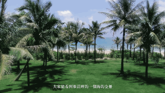 椰林掩映的草坪临近艾迪逊的“私人海域”,夏日阳光下,椰叶筛下的日光从椰林深