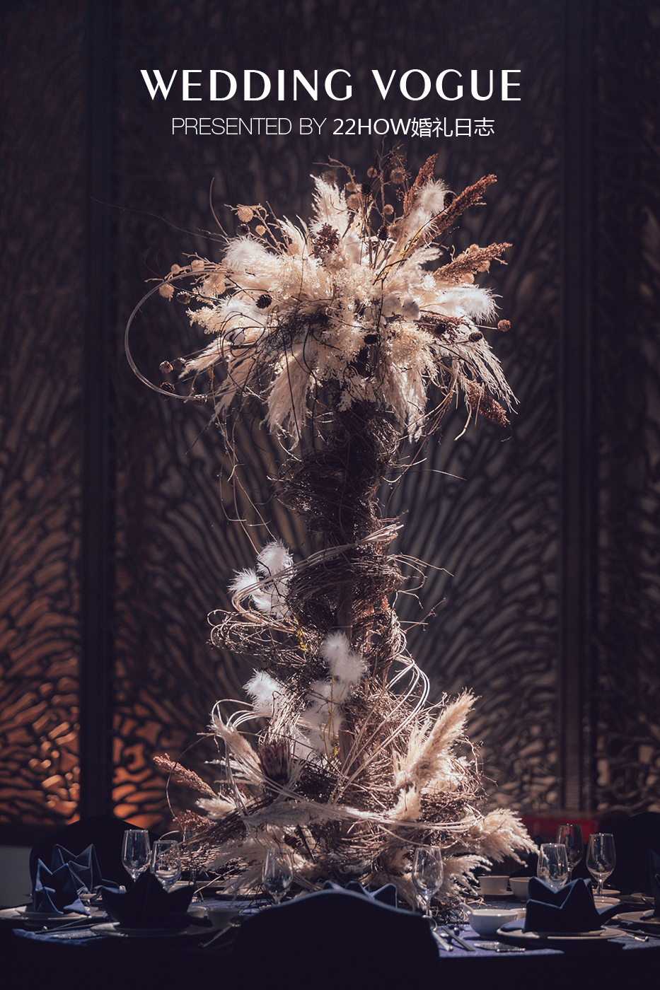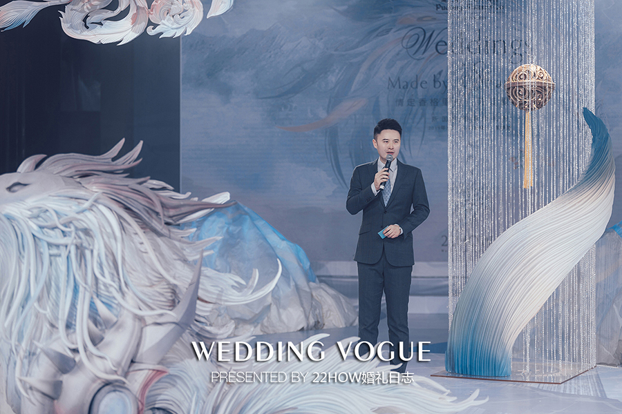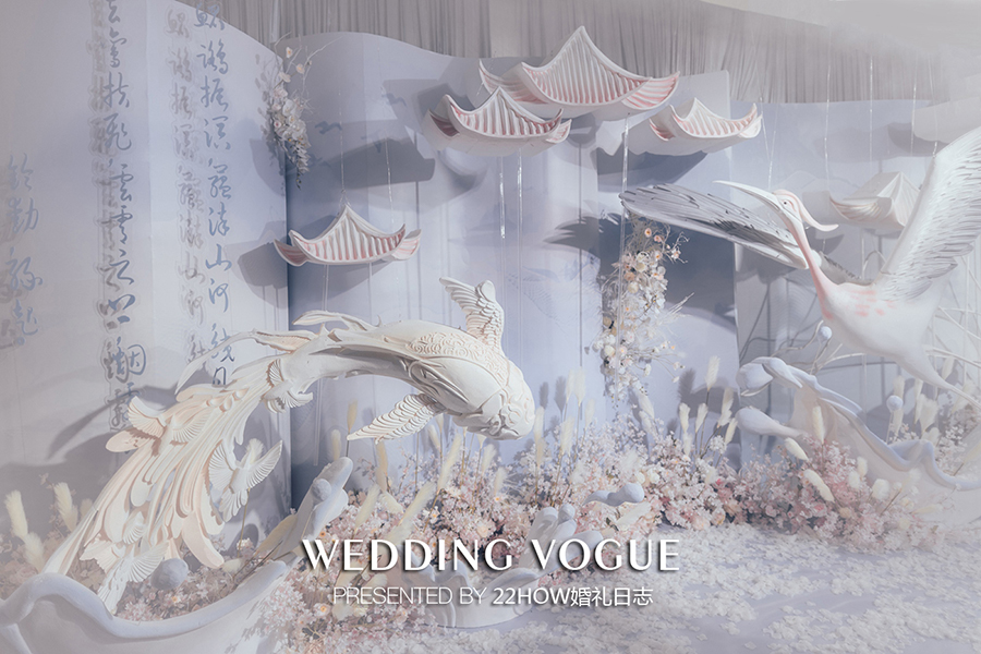 此次22HOW婚礼日志与合作伙伴一起用心制作,呈现了一场精彩的婚礼概念秀,在流程设计上将内容融入了上古神兽的定制元素,与唯美意境新国风主题相衬托,给新人与来宾带来了视觉盛宴。