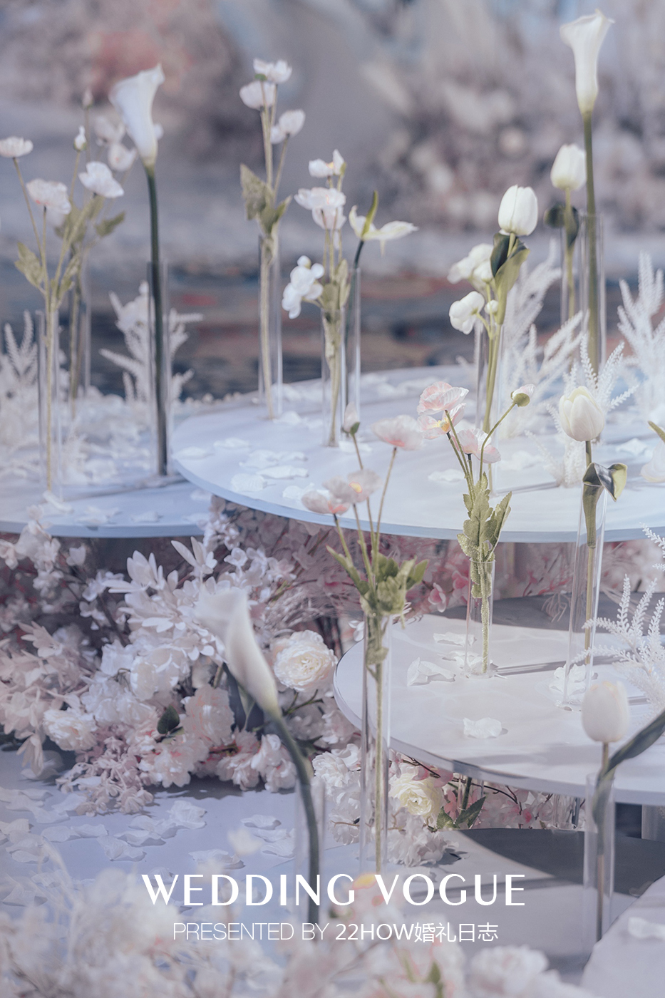 唯美意境新国风为主基调的现场,可以用唯美梦幻、空灵飘逸、仙气缭绕来形容。将“国风美”进阶到新的高度,是中国古典传统文化与现代艺术结合方式,让所有来宾留下了深刻的记忆——婚礼现场早已不仅仅只是一个神圣的仪式厅,更多的是体会到,爱与美是人与生俱来的自然流露。
