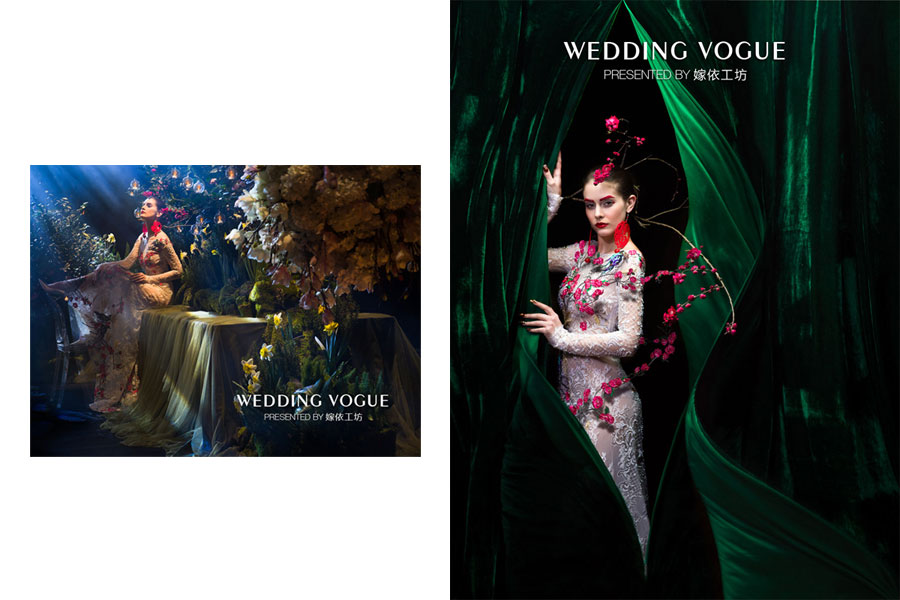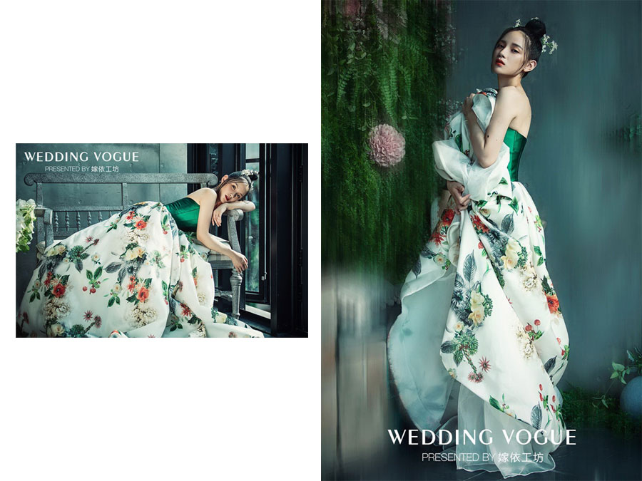而在此前的风尚大片《花重锦官城》中,嫁依工坊也特意为拍摄准备了一共七套礼服,这其中更是包括着三套刚刚问世就被带到成都进行大片拍摄的2017年春夏新款,最终一共有四套礼服出境演绎大片。
