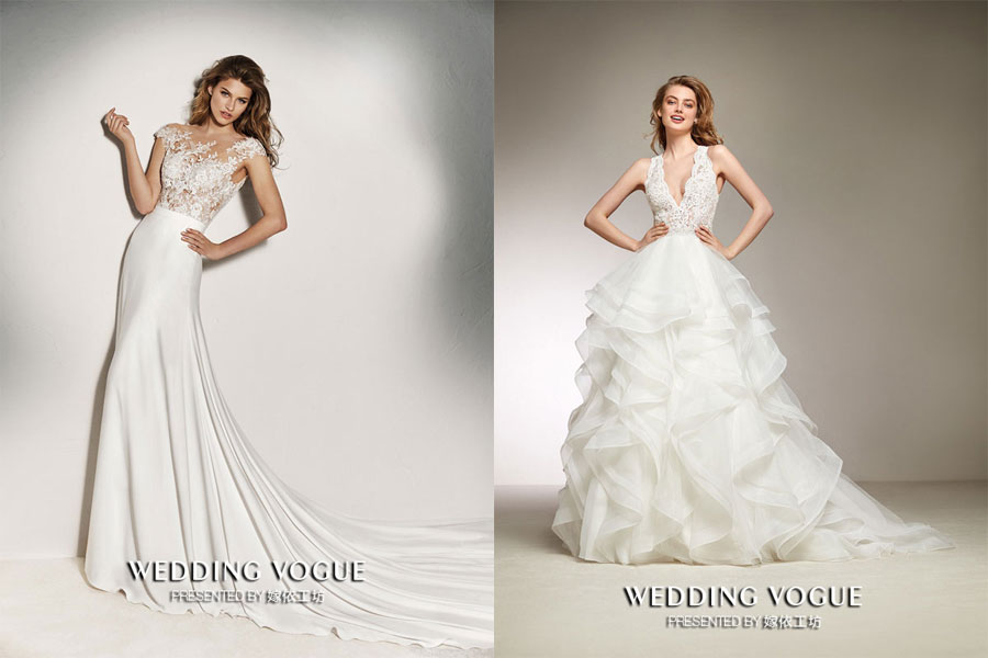 户外婚礼要充分考虑到多方面的客观因素,包括天气及现场的礼仪布置设计。大多户外婚礼的布置都相对简洁浪漫,宾客人数较少。场地又多以绿植及鲜花做布置,整体氛围十分圣洁温馨。所以在礼服的挑选上,嫁依工坊建议新娘可以选择纱质轻巧或者质感强烈的蕾丝材质的礼服,整体塑造比较纯美的感觉。版型上,则推荐A-LINE及半鱼尾款,既满足了新娘轻便的需求,又能很好的演绎新娘柔美的曲线。