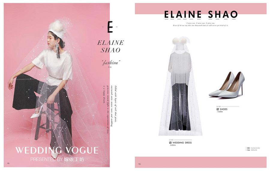 同时在今年,嫁依工坊还自主创立了自己的婚纱设计品牌ELAINE SHAO。