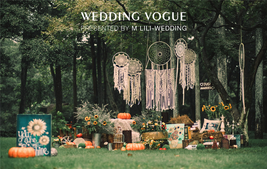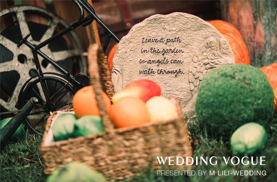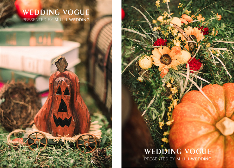 这个属于秋天的节日,其实也可以用属于秋季的颜色和果实来诠释。南瓜色、深深浅浅的黄、原木桌椅、由绿转黄的树叶……在田野中许个愿,搭配一桌小清新的蔬果大餐,也可以让这个万圣节婚礼变得很不一样。