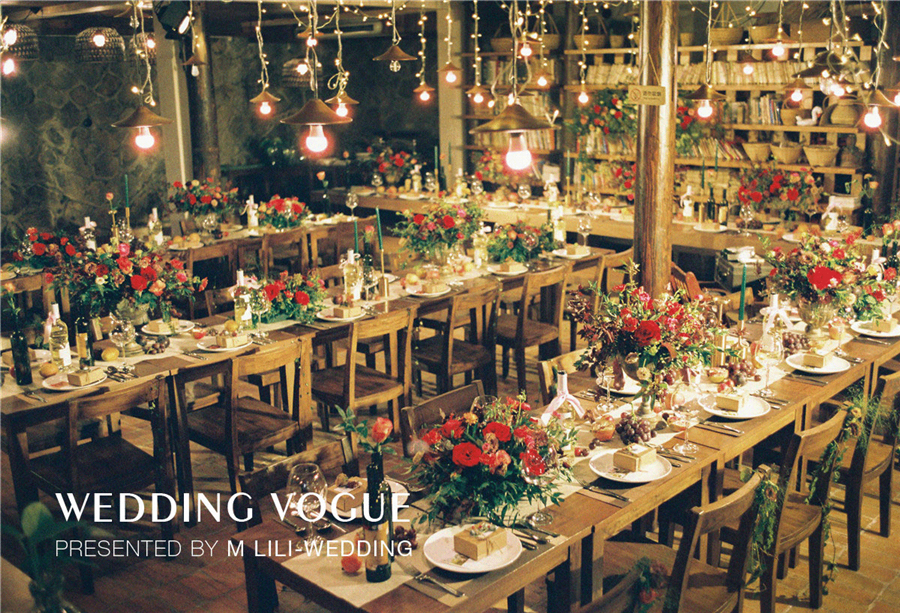 秋天本就是一个充满色彩的季节,所以在户外举办婚礼,可以借助天然的颜色,晚上的派对则放在室内,选择具有独特装修风格的餐厅或咖啡馆。