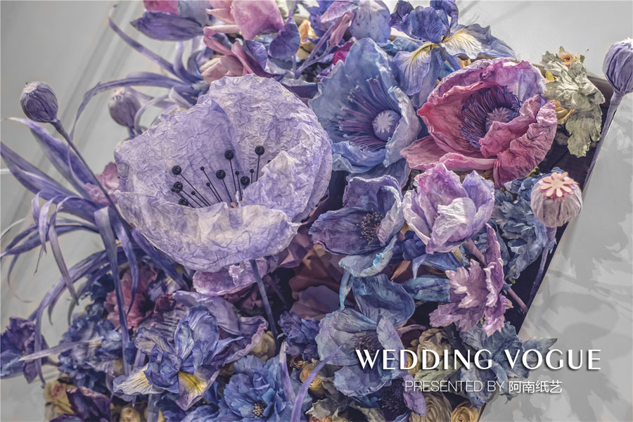 在阿南看来,纸艺其实有很多优势:1.没有季节性。纸艺花在使用上不像鲜花有季节性的限制。2.造型样式无限制。尺寸可大可小,抽象具象设计均可以,而因为手工染色,纸艺颜色可以千变万化,真正在创作上实现无限可能。3.保质期延长。鲜花布置都是一次性的,但是质量上乘的纸艺可保留高达3年的时间,甚至还可以反复组合使用。