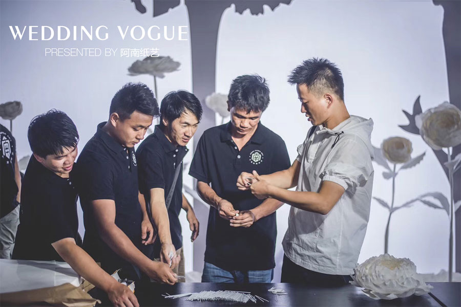 就这样,阿南纸艺慢慢地在行业打开了市场,因为订单一直呈上涨的趋势,阿南也从个人发展到现在的50人团队,工厂更是近千平米。国内但凡大家都知道的宴会设计师、工作室或者婚礼机构,以及迪奥、爱马仕、巴黎之花等国际品牌,甚至是《中国好声音》等电视栏目都和他保持着紧密合作。