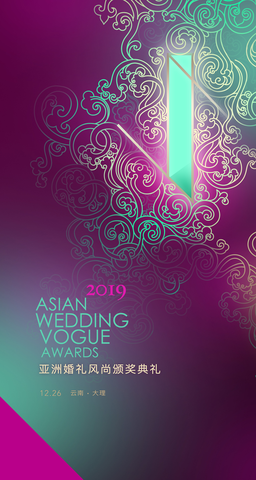 同时,对于从2015年开始,每年颁奖典礼上都会特别设计,寓意wedding和wedding vogue的“W”字样。赖教授此次也将其与大理少数名族的人文元素相结合。