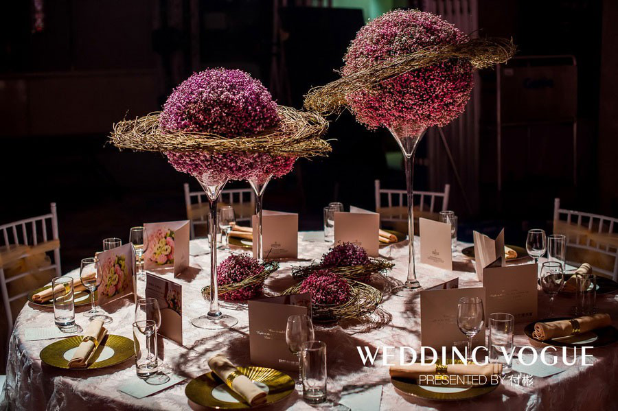 从餐桌花设计大赛,到人体花艺展,再到宴会设计发布,付彬以具有「未来感、科技感」的延续性风格设计,通过WEDDINGVOGUE婚礼风尚表达着自己对婚礼与艺术的理解。