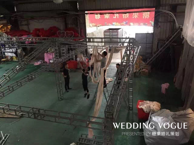 糖果拥有自己使用面积两千平米的仓库,专设了自己的执行、花艺、仓储中心,团队成员在工作之余还会进行专业的学习和培训,在仓库做实景婚礼现场搭建。