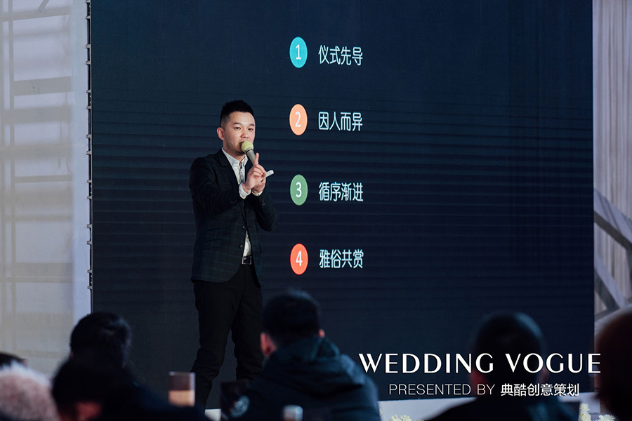 典酷创意策划联合创始人天懿分享的主题是婚礼策划师的个人魅力打造以及婚礼方案的讲解技巧,他用自己特有的互动式教学,使每一位学员都参与在课程之中。并在现场展示如何生动的为客户讲解自己的婚礼方案,用自己的个人魅力感染在场的每一位学员。