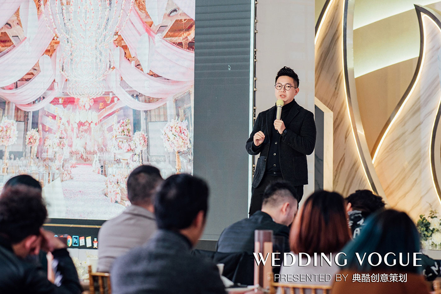 陈刚分享的主题则站在平台的角度,主要分享婚礼作品与商业模式之间的关系,婚礼产品与作品的差异化,他以婚礼堂为例子,分析了未来婚礼发展的趋势:办婚礼桌数越来越少,越来越多婚礼公司注重服务等,以此提醒婚礼人们为作品创造优势。