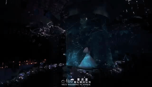 在2019婚礼风尚年度宴会设计作品大师赛上,Nice喜庆堂代表作品《初见》再次将多项高科技互动装置运用到婚礼上,通过巧妙的空间设计,神奇的在空中形成曲线、文字和三维图案等各种动态造型,360度沉浸体验,虚拟与现实结合,让来宾叹为观止,受到了一致好评,荣获年度空间设计大奖。