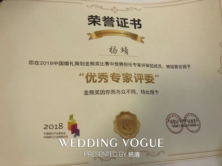 2017年 中国婚礼行业(高端策划类)最高奖项 金熊奖专家评委