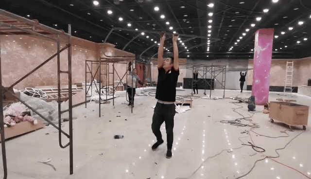 2000平米的舞台,包括周围的护栏,搭建时间只有35分钟,载看起来似乎不可能完成情况下,007婚礼特工的小伙伴完美完成了任务。
