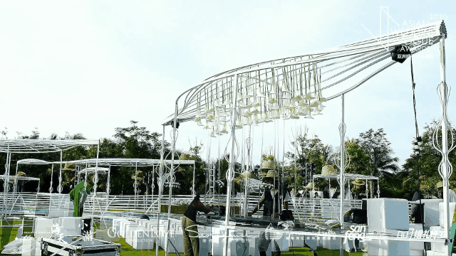 由于盛典开幕式意义重大,设计上运用的又都是巨大的铁艺结构,为了保证效果,以及避免出现任何差错,徐丹还是选择了经常合作的007婚礼特工。