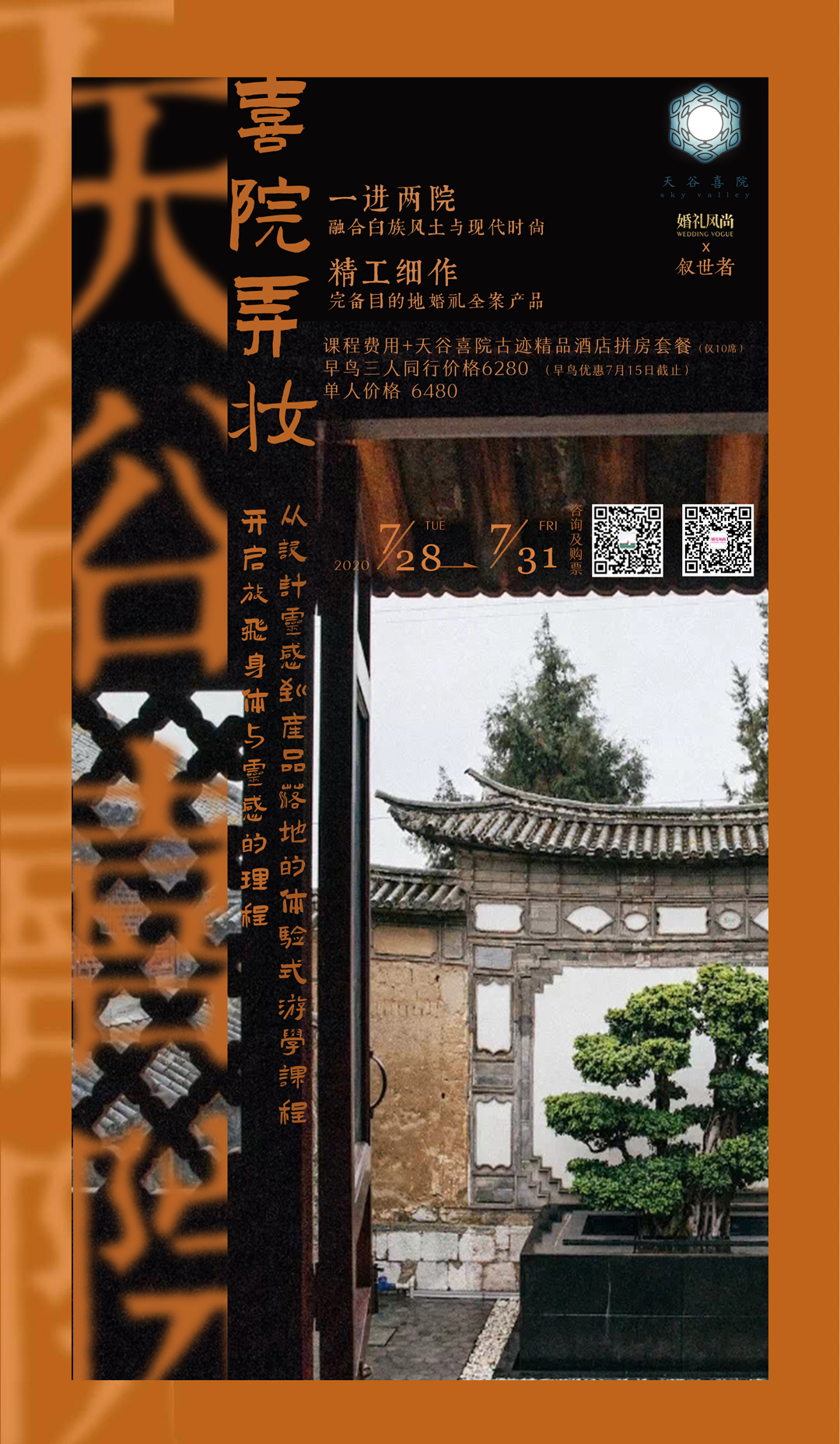 2020年7月28-31日 ,婚礼风尚与叙世者在云南大理,开启从设计灵感到产品落地体验式游学课程.这一次,不仅是一场设计游学,还有真实婚礼的设计解析与实景打造,目的地婚礼产品发布与全国合作品牌的招募。