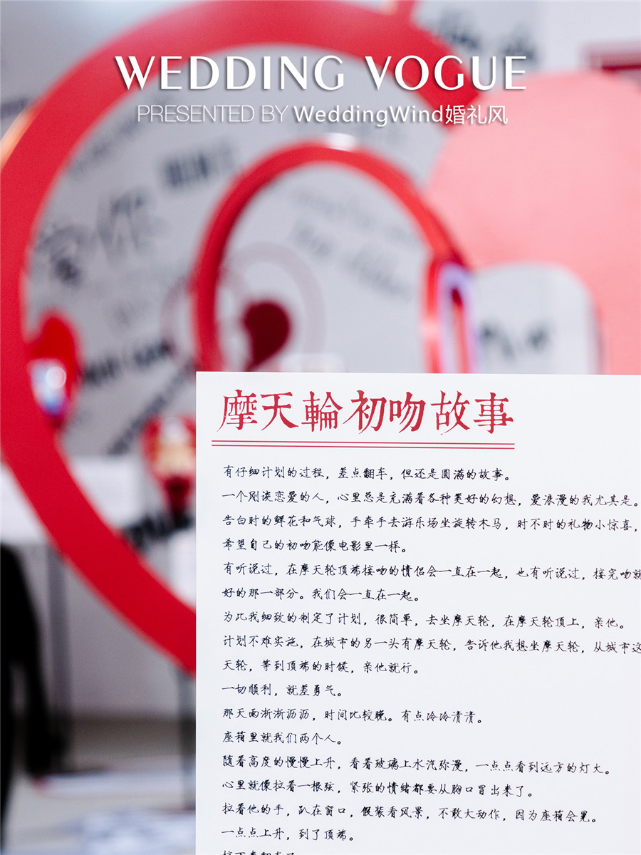 在【吻】装置的旁边婚礼风选择了一个摩天轮初吻的故事,青涩懵懂小鹿乱撞的内心OS特别有画面感。