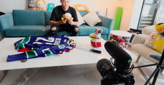 新郎对着镜头回忆起了那些爱的纪念品背后的故事——【五月天的应援棒】【小黄人爆米花桶】【博格巴球衣】【面包超人】……还有一些他们一起旅行留存的照片、视频,特别的有爱。新娘在看视频的过程中几度感动落泪。
