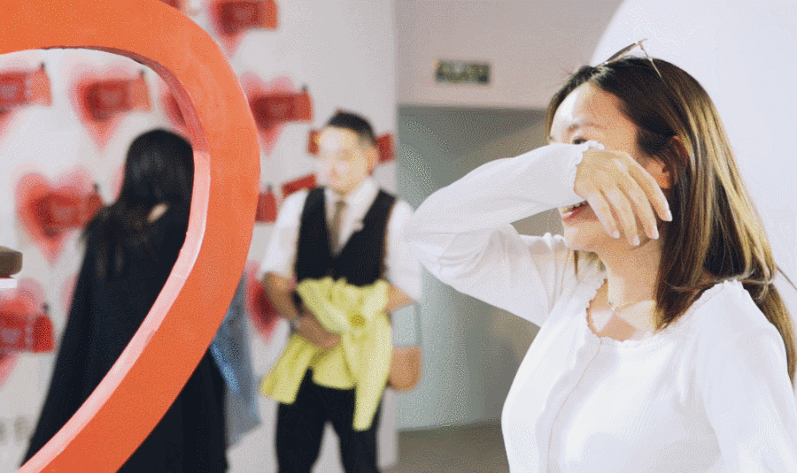 在统筹中,婚礼风和新娘Queenie的好友互相打配合,首先由闺蜜出马“骗”Queenie说七夕节在798有一个展,可以过去拍拍照;求婚前一天闺蜜还特意跑来求婚搭建的现场熟悉动线,理解【有爱博物馆】的设计精髓。