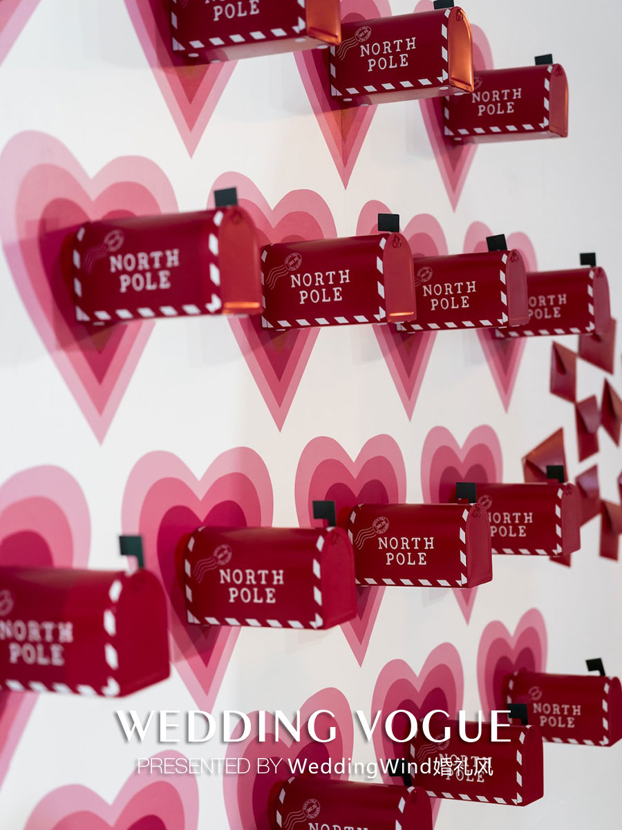 婚礼风将深浅不一的棒棒糖排列成为由深红的棒棒糖拼成了一个大大的爱心,大家可以在此前摆拍。同时,也放置了可食用的棒棒糖在拍照墙的旁边,让大家一起分享爱情的甜蜜与喜悦。(哈哈哈哈也可以说是狗粮吧)