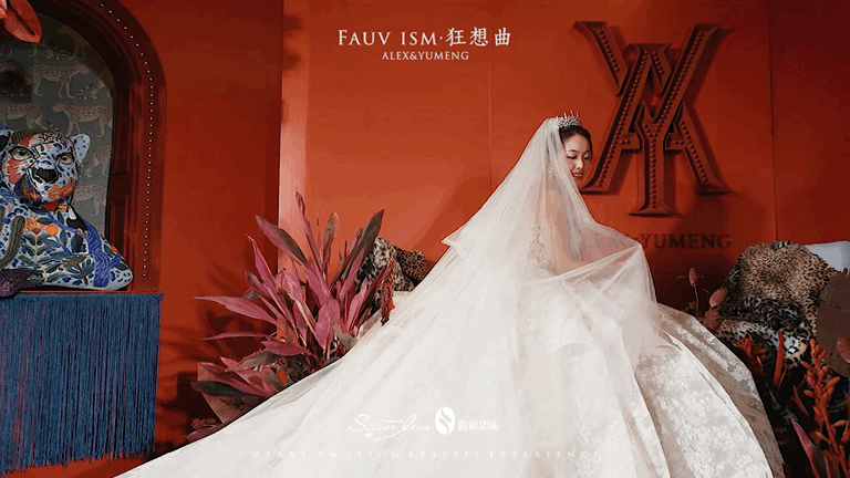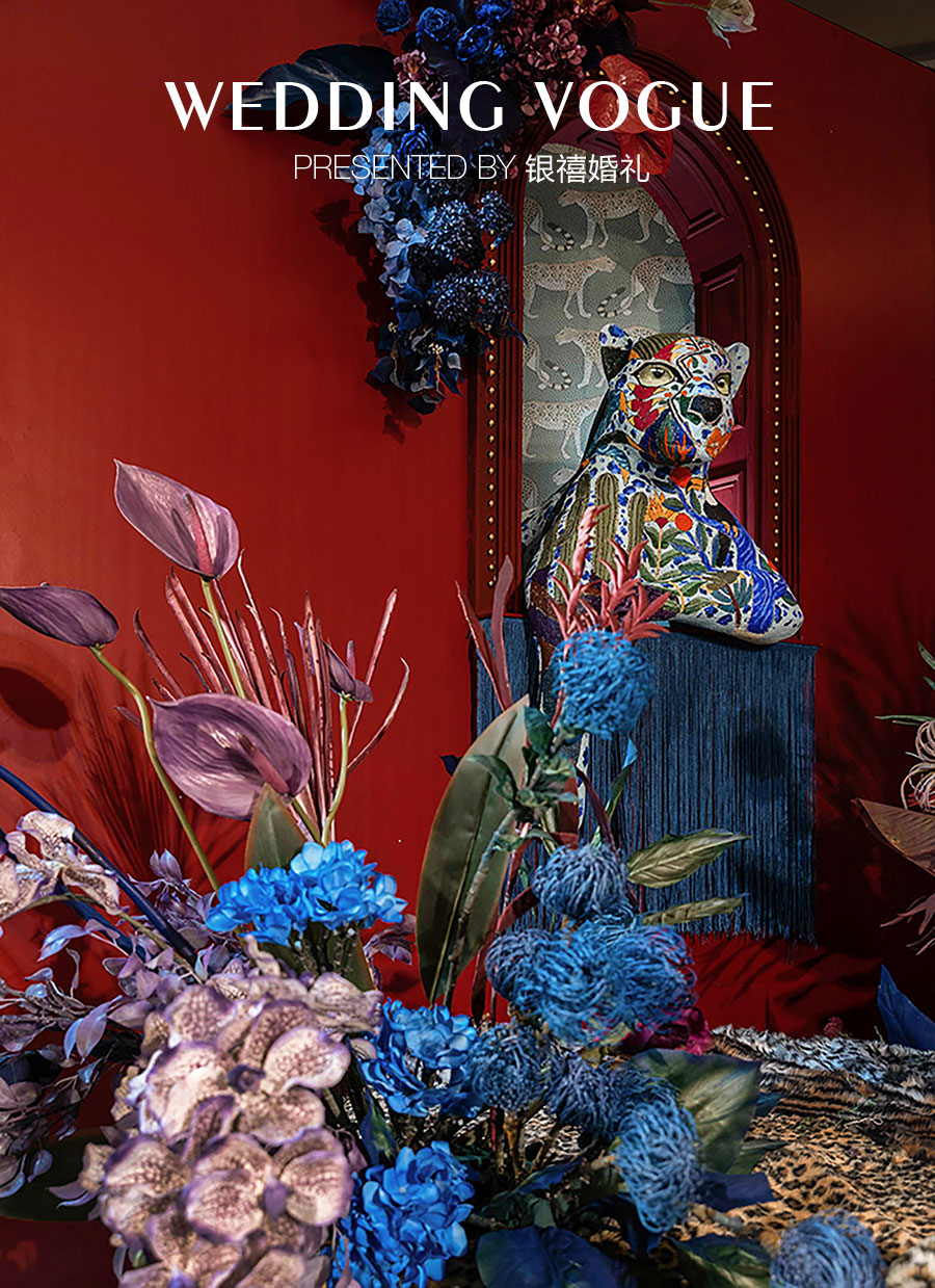 这场婚礼的设计融合了野兽主义的风格,采用了大胆的色彩、简练的造型、 和谐一致的构图以及强烈的装饰性。