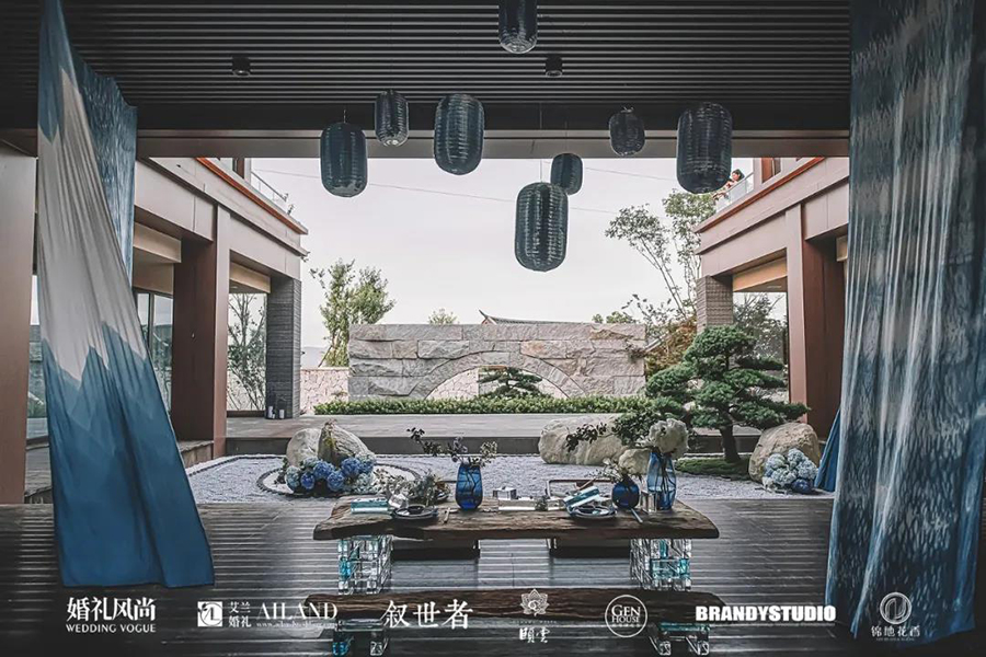 婚礼风尚自关注于大理开始,曾于室内呈现坐苍山观洱海的意境,