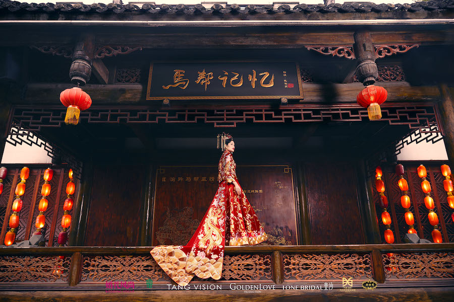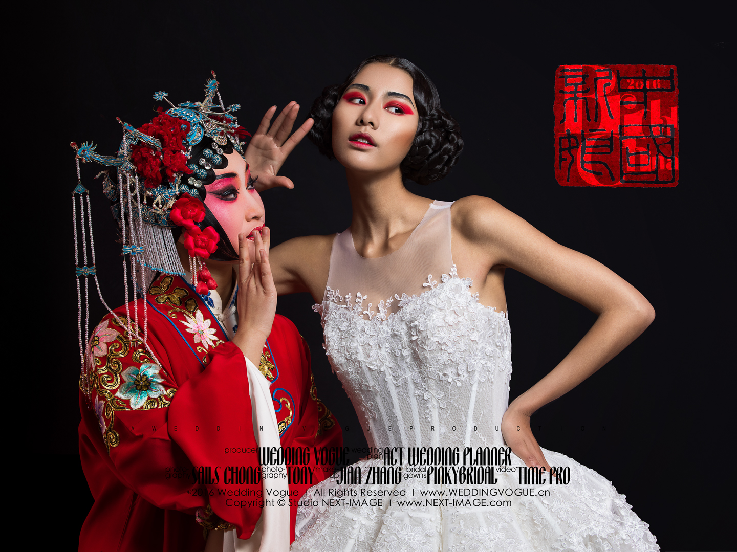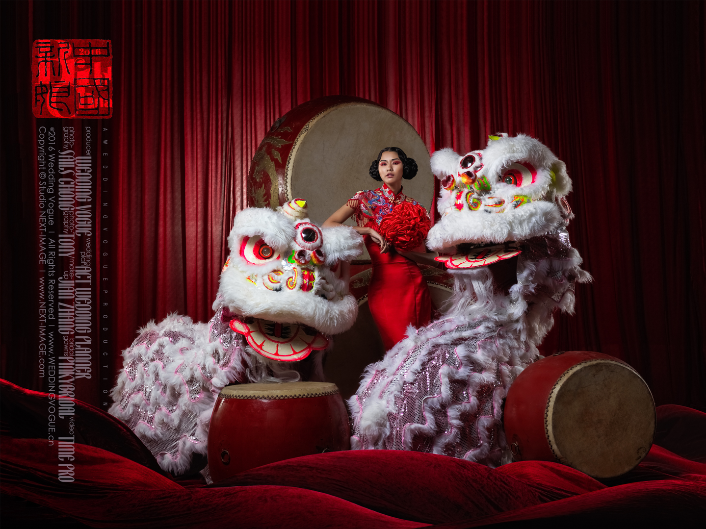 2016中国新娘的拍摄,增加了很多的中国元素,比如大堂鼓、民间舞狮、京剧,青花瓷花纹、中国印章、染坊景别等代表着特定文化,而这些只属于中国新娘。