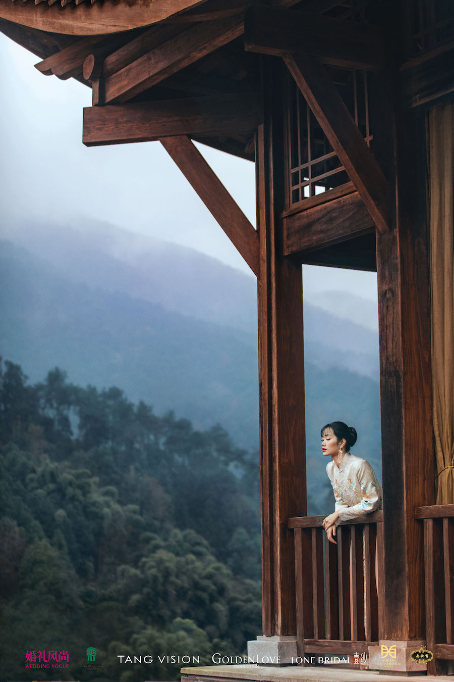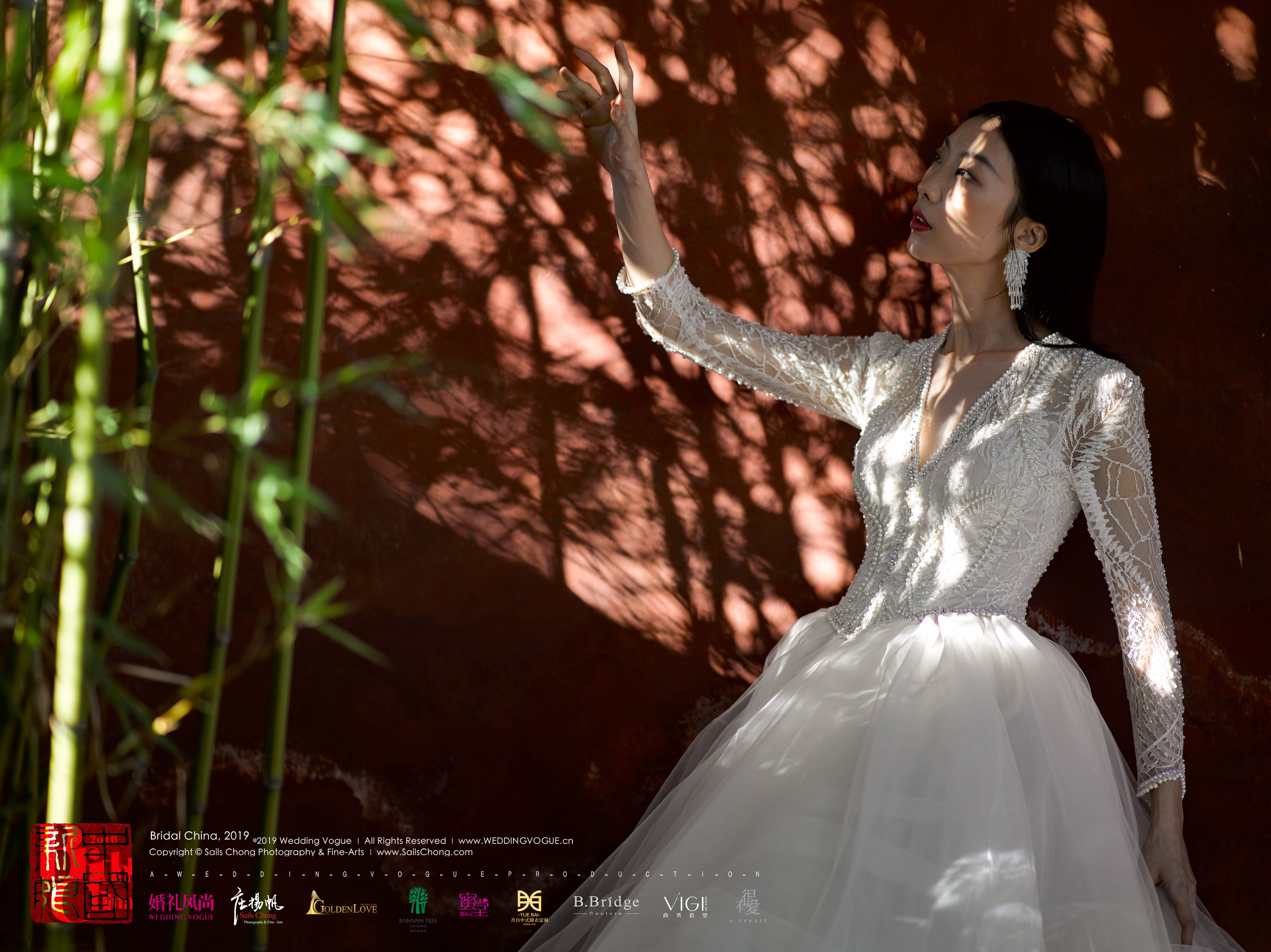 此次拍摄突破以往的中国风必须满屏红色的刻板印象,选择以竹子作为中国新娘背景,并通过情景主题把控,体现竹之气质。