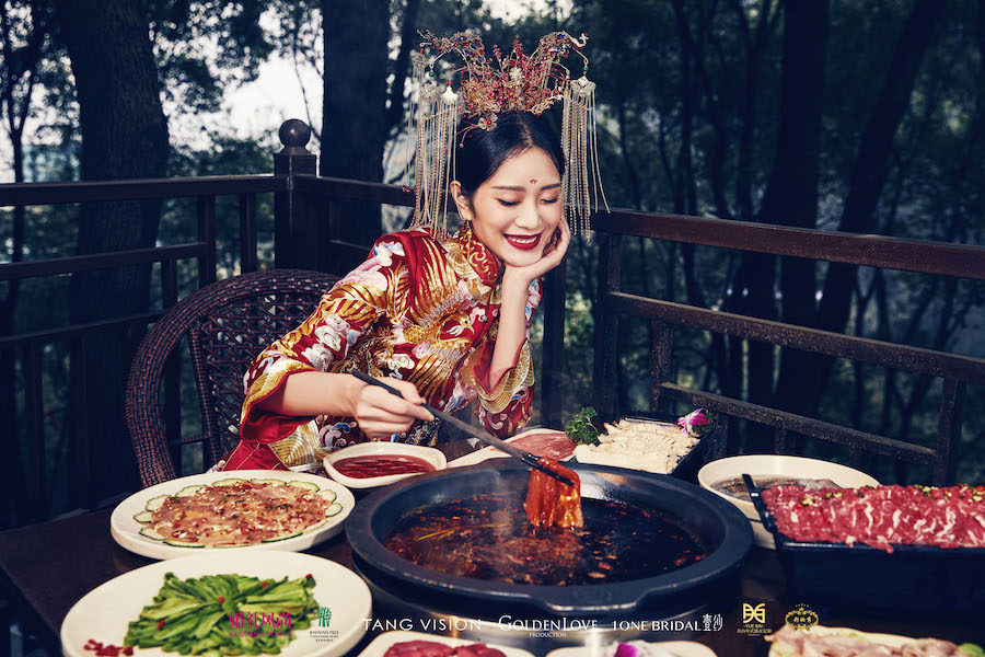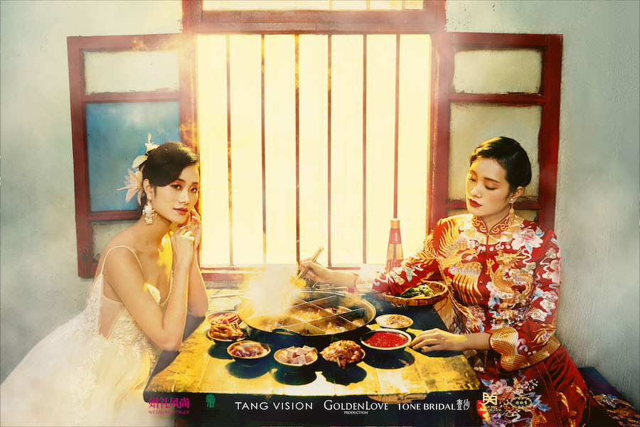 除了传统的红色中式嫁衣,此次拍摄还增加了将中国山水、花鸟刺绣等中式元素与西式婚纱结合,呈现出别样的中西结合之美,展示了中国新娘更多的可能性。