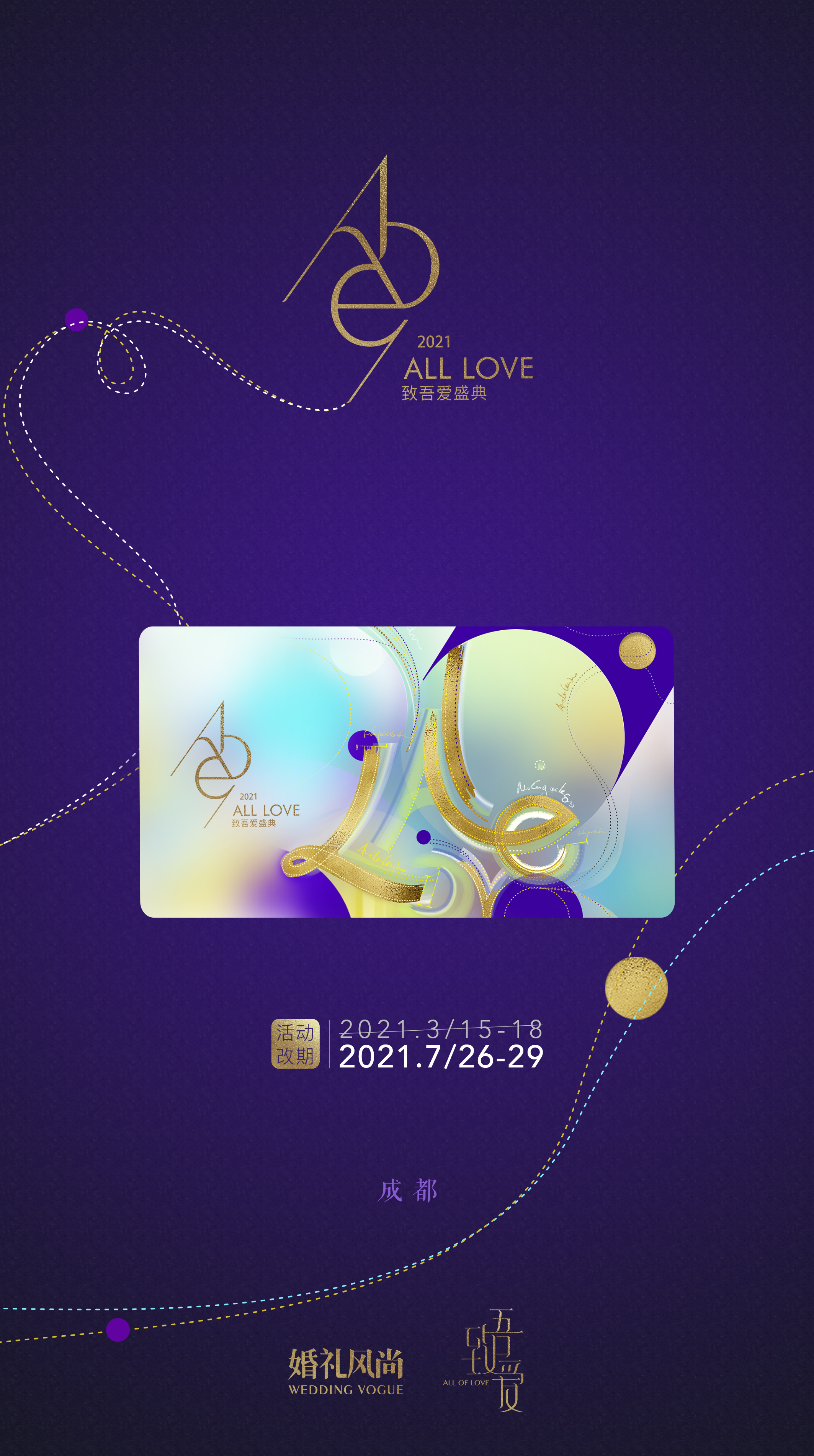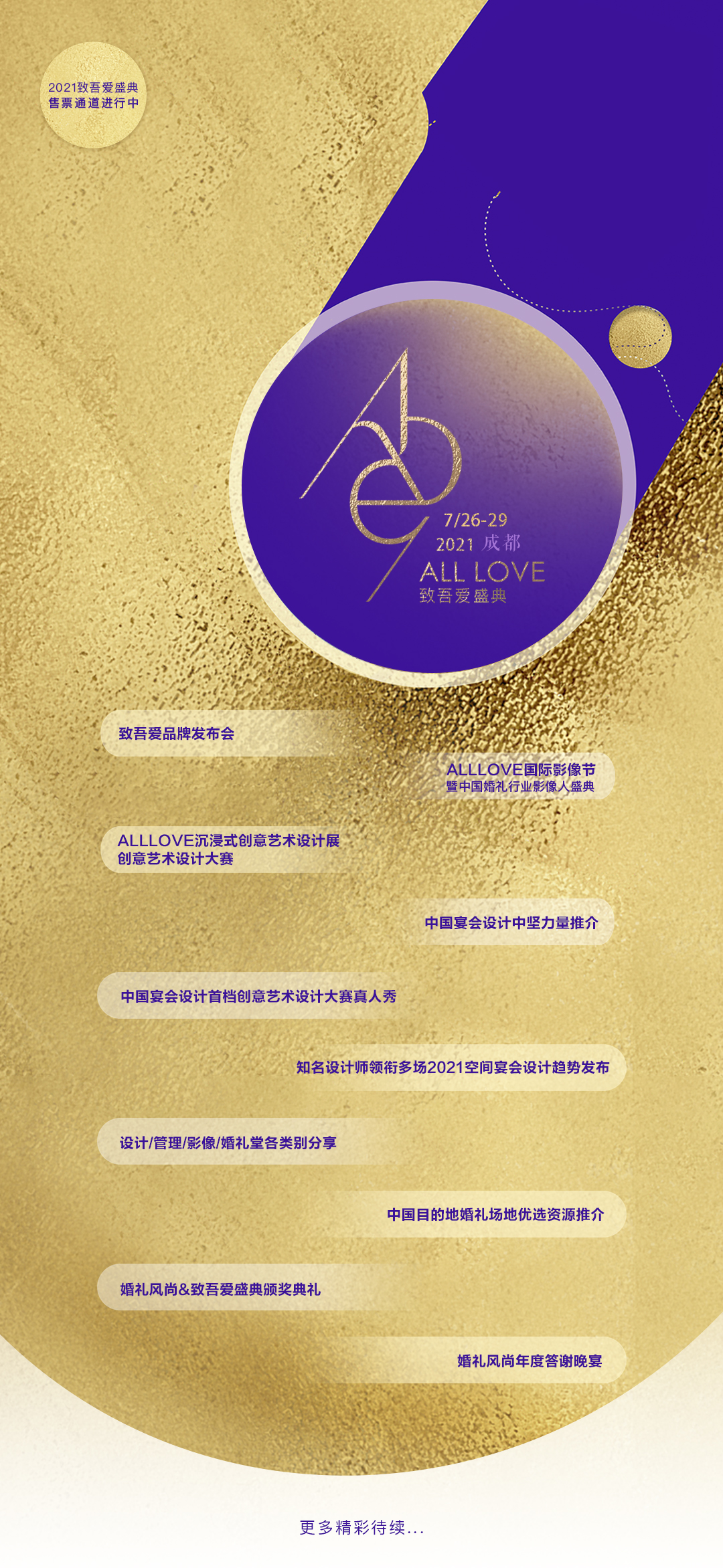 此次延期根据去年疫情走势,ALL LOVE 致吾爱盛典组委会选择疫情风险较低的7月,亦避开婚礼高峰期,与精英力量同行,积聚力量共同引领行业向上。在此期 间我们将与相关部门保持密切沟通,切实做好 ALL LOVE 致吾爱盛典筹备工作, 呈现优质行业内容。