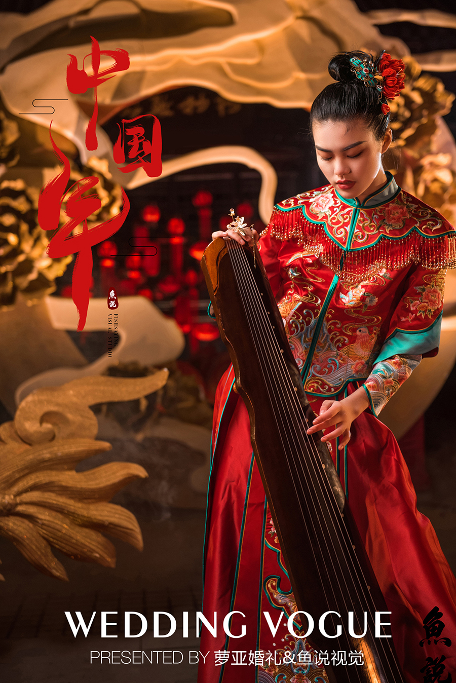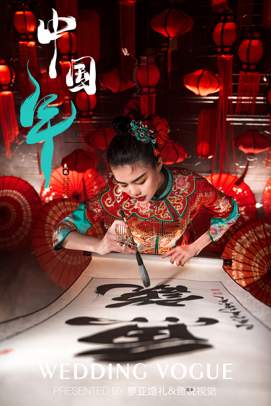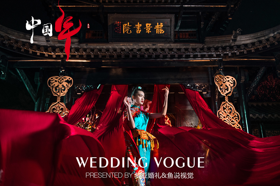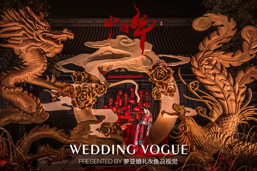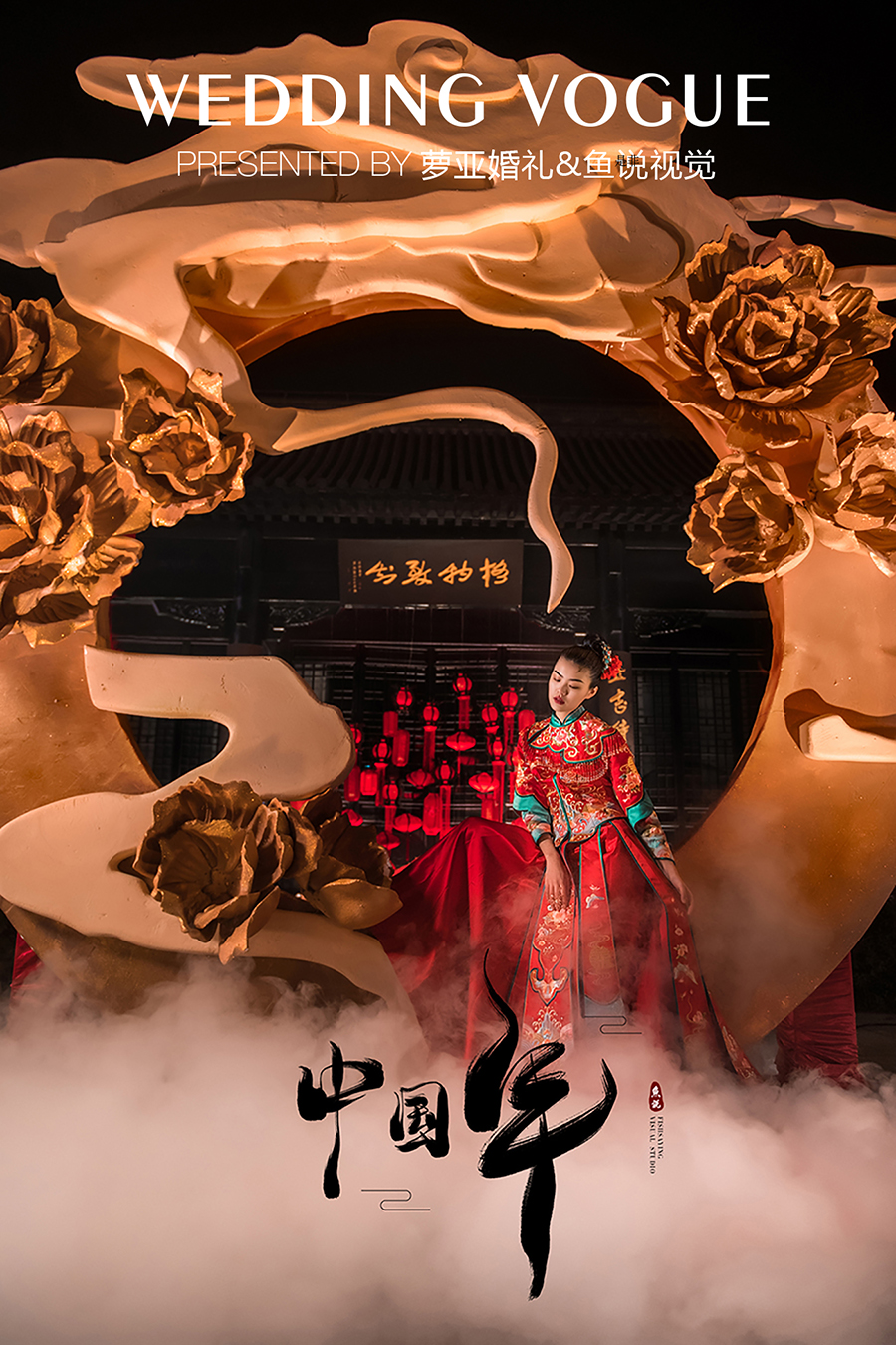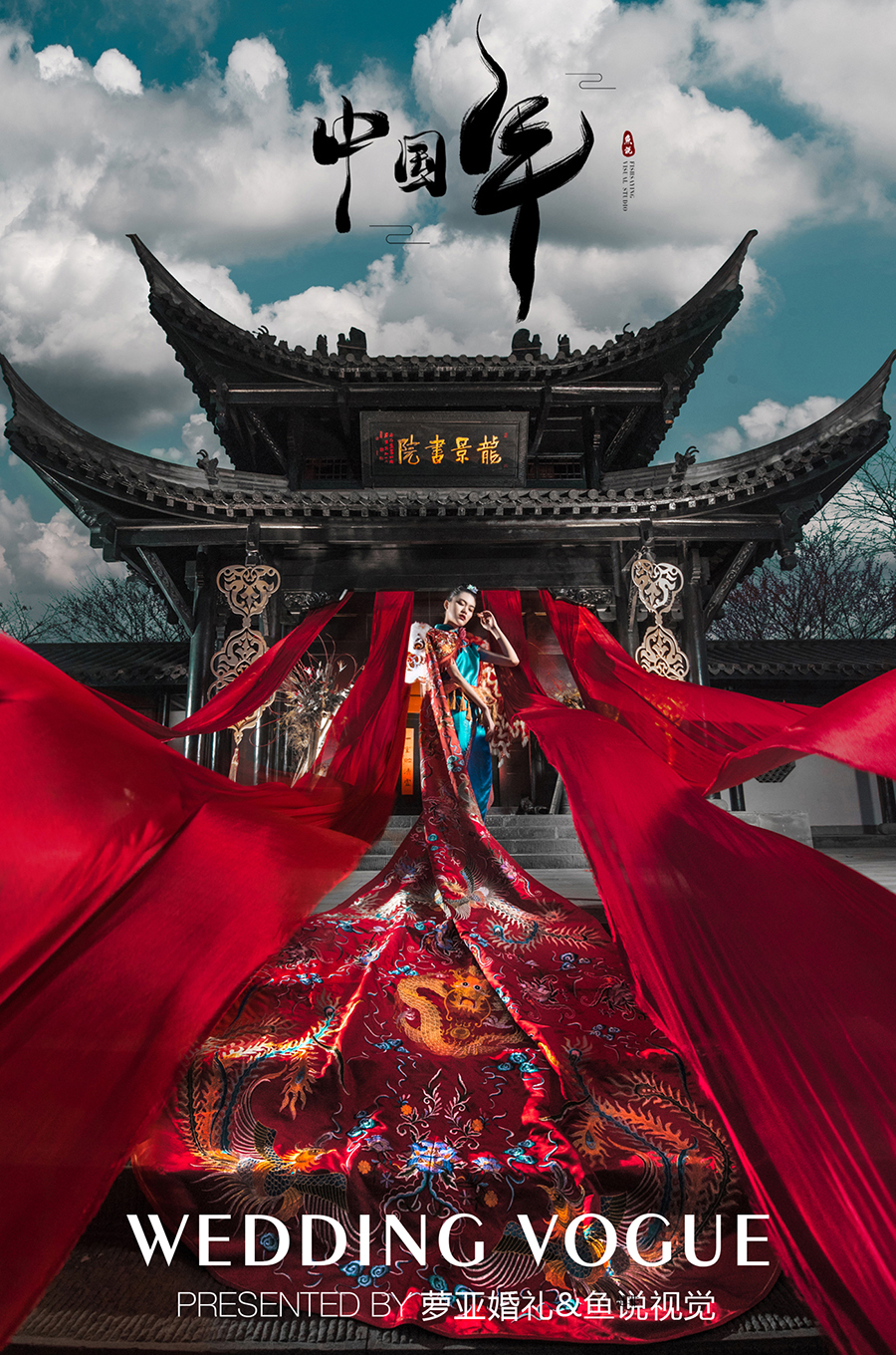 此次中国年主题大片拍摄场地,选择在重庆园博园-龙景书院,萝亚婚礼在书院中置景,选择博大精深的汉字元素、意境深远的龙凤雕塑、别具一格的灯笼、特色鲜明的绸缎等丰富中国元素,作为创意来源。