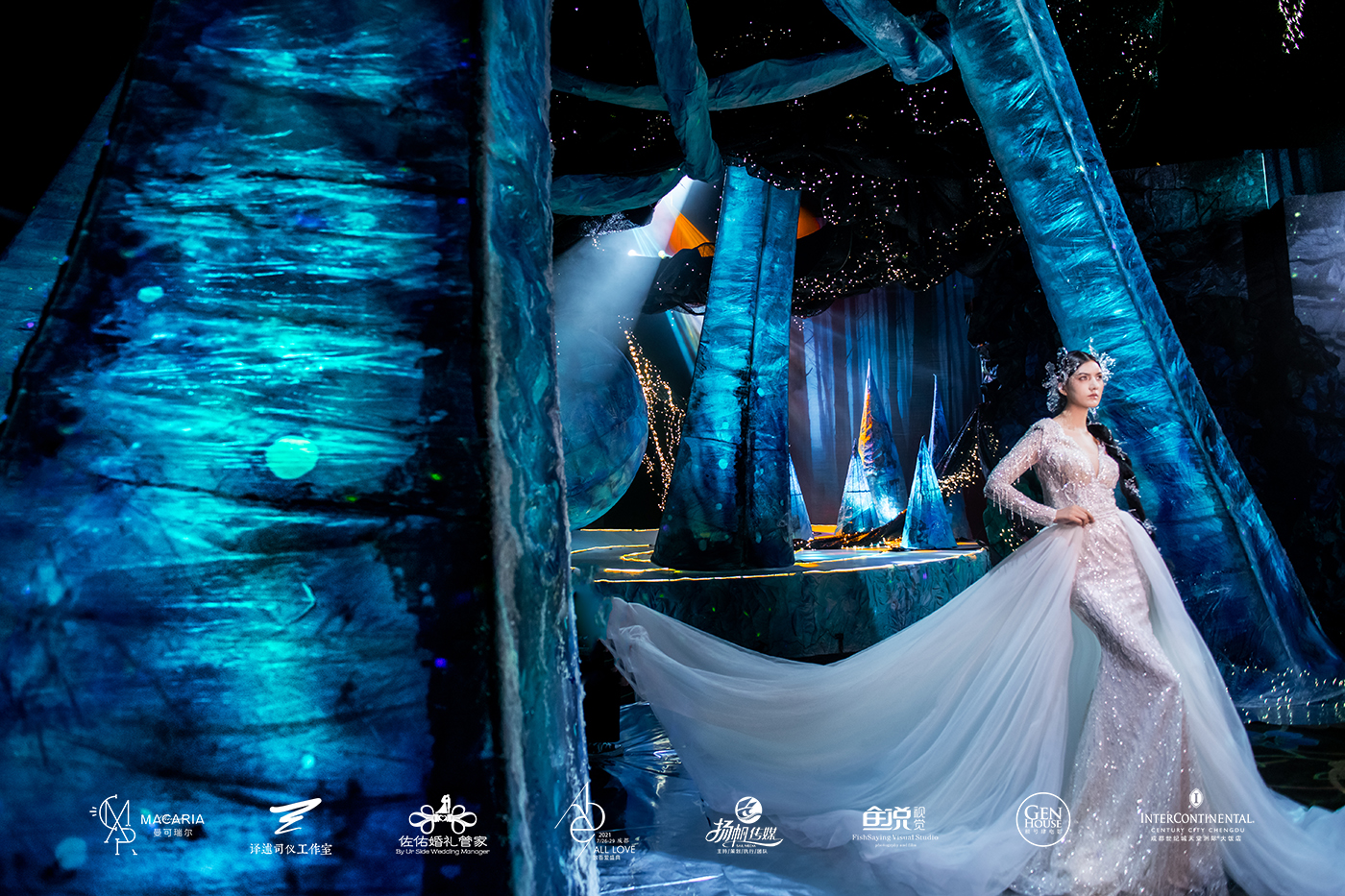 本次宴会设计趋势发布,曼可瑞尔坚持将自然融入设计,呈现了美轮美奂的森系品牌风格。
