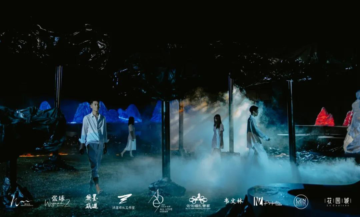 除了设计空间和装置,张球老师和团队设置了沉浸式的行为艺术创意流程: