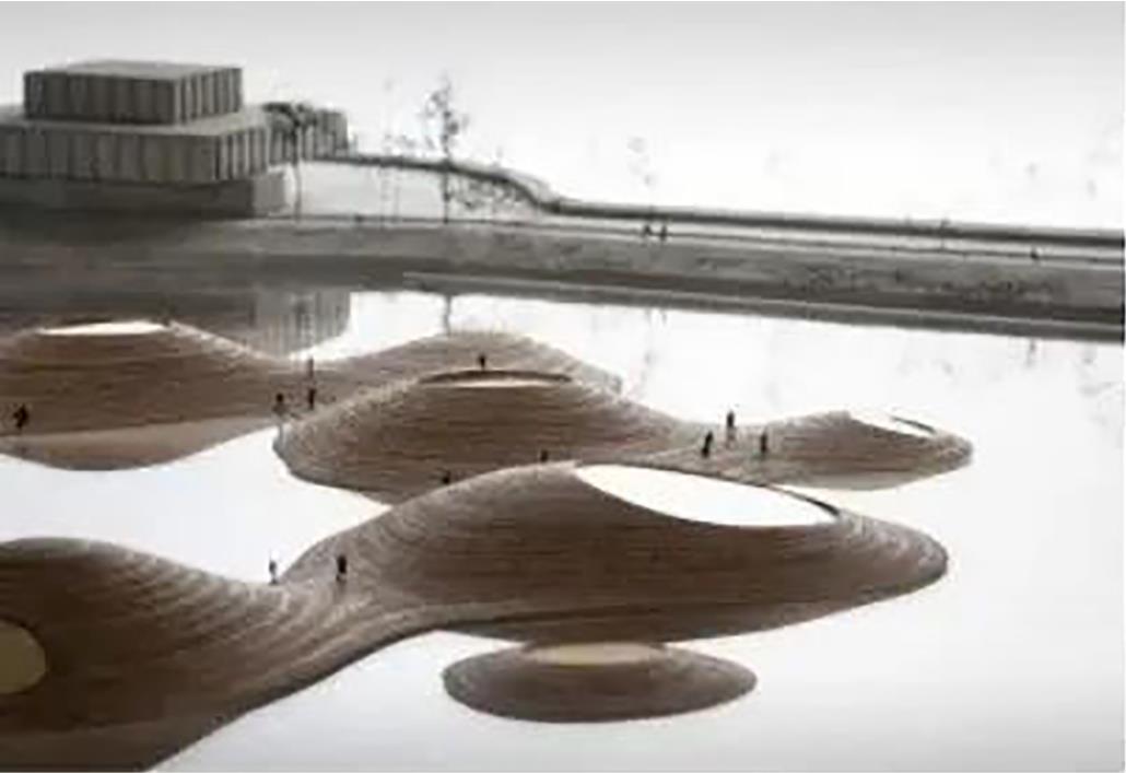 4座落地的岛屿在人的普通视野之内,人们不用抬头,便可窥见岛屿的全貌,如同人生道路上的一些小小目标,或是尽在咫尺,或是已经“上岛”。