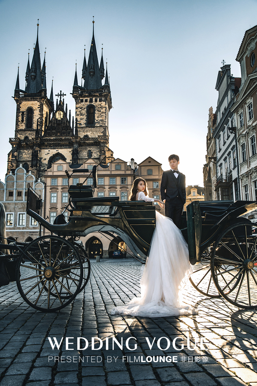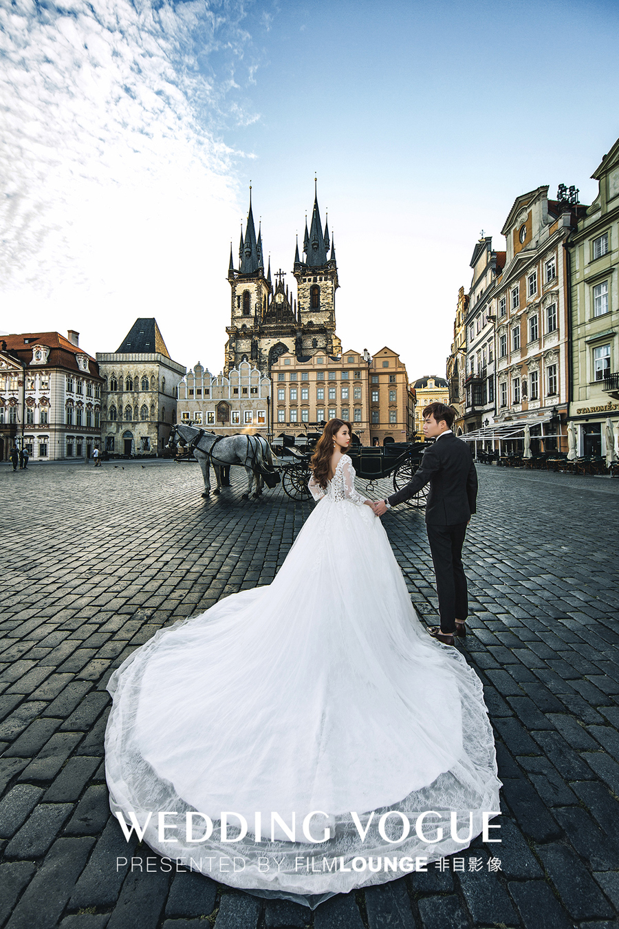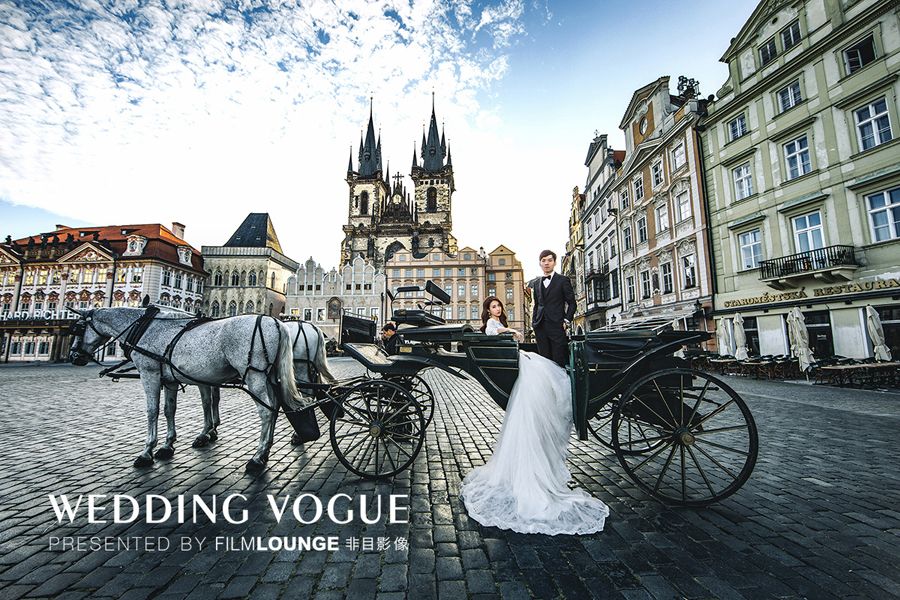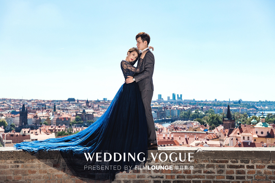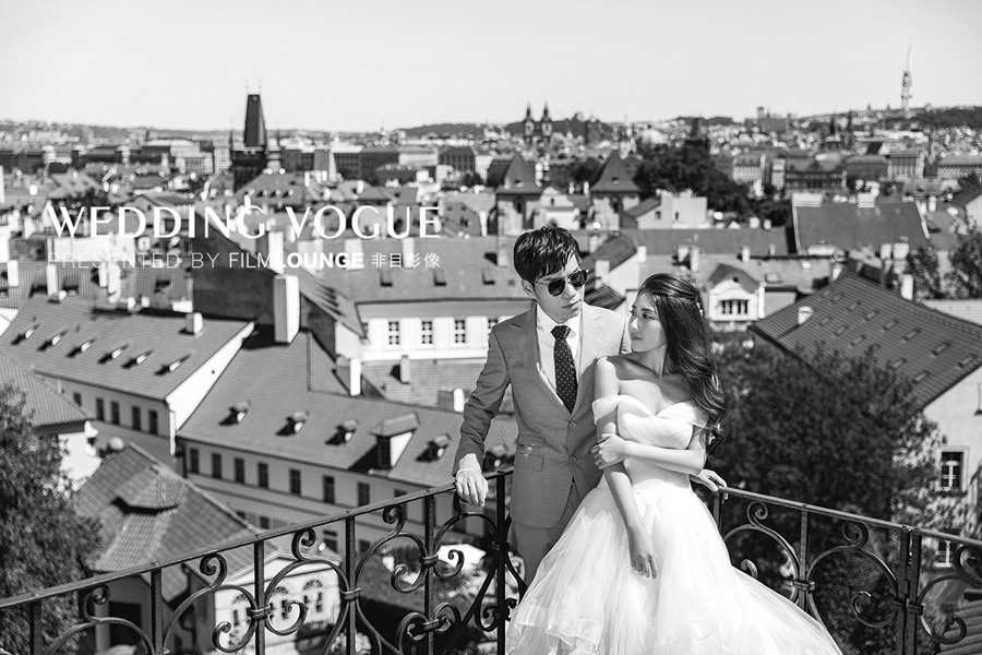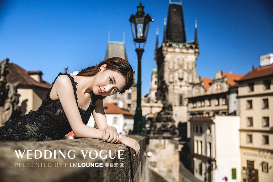 在美丽的布拉格,选用复古的婚纱礼服和婉约的造型,清新唯美。