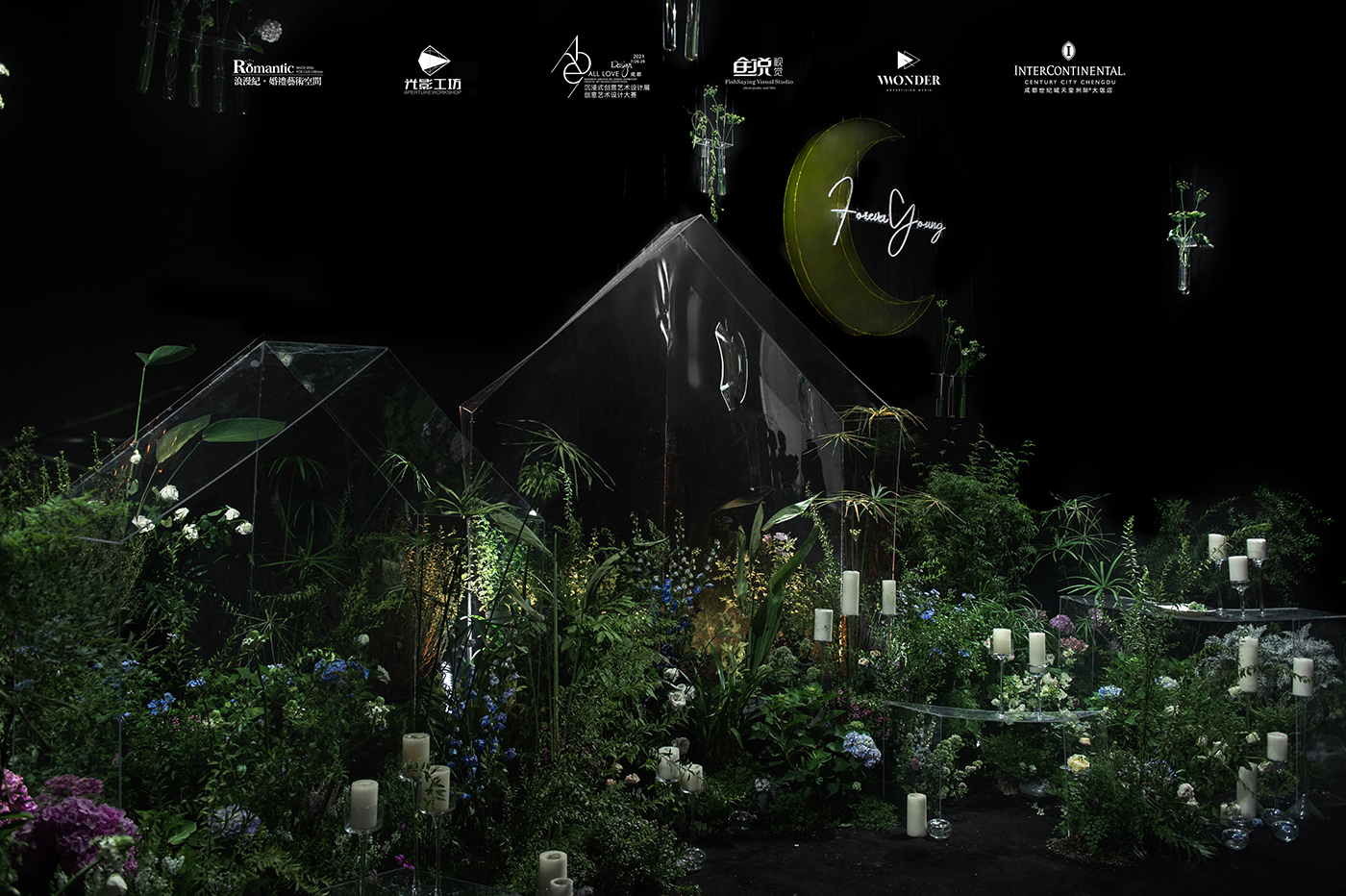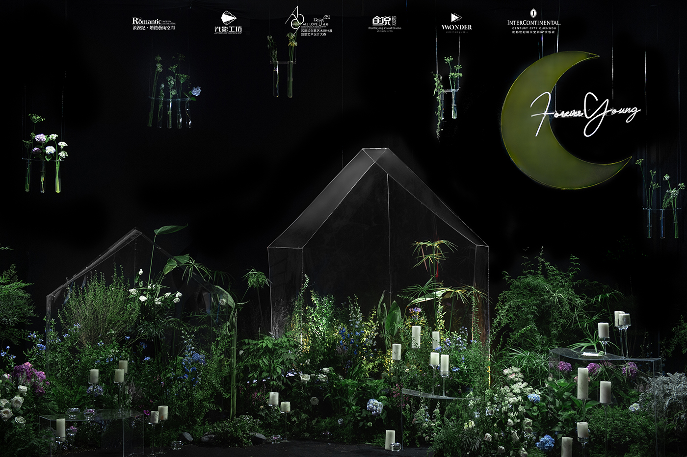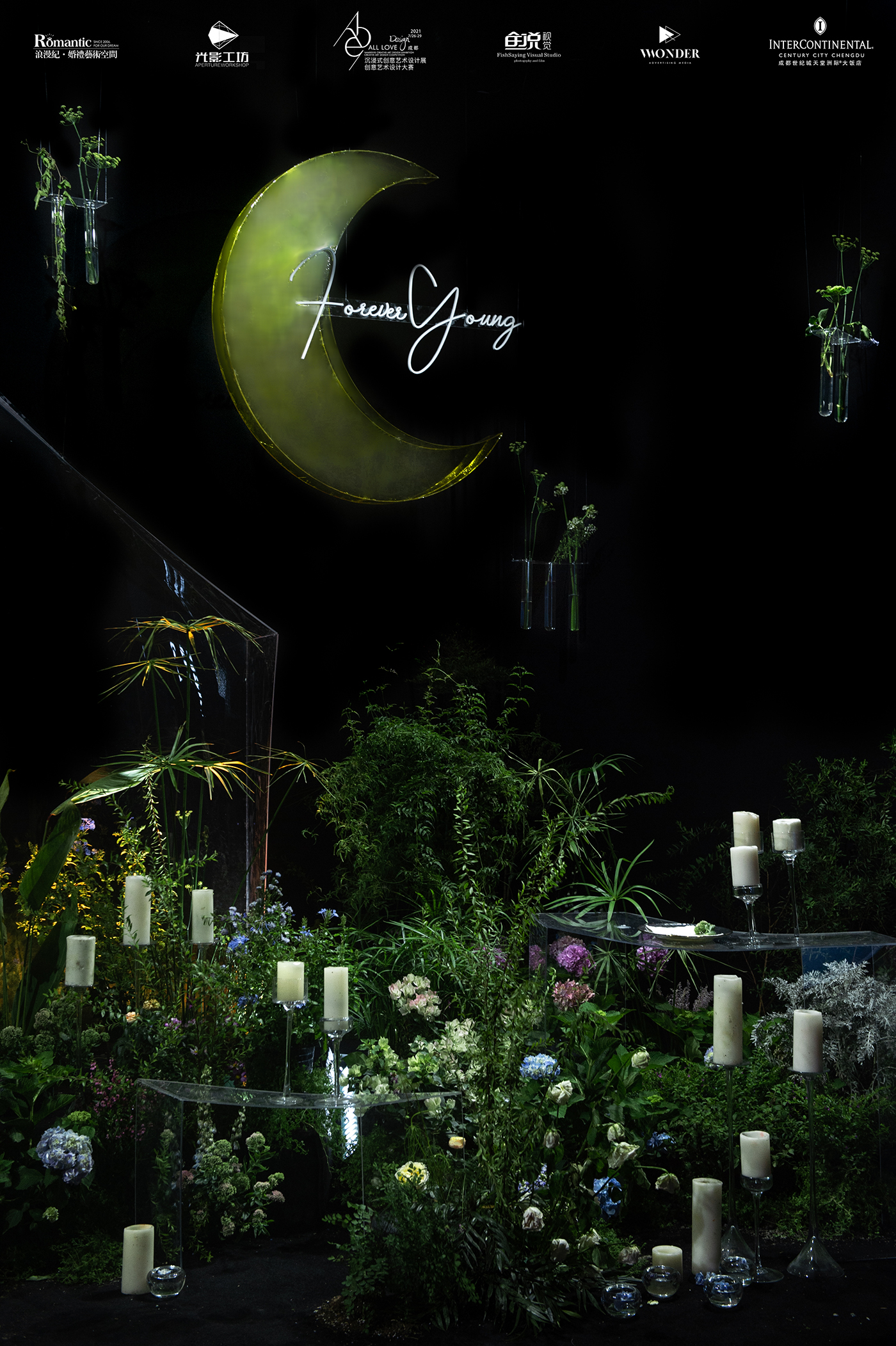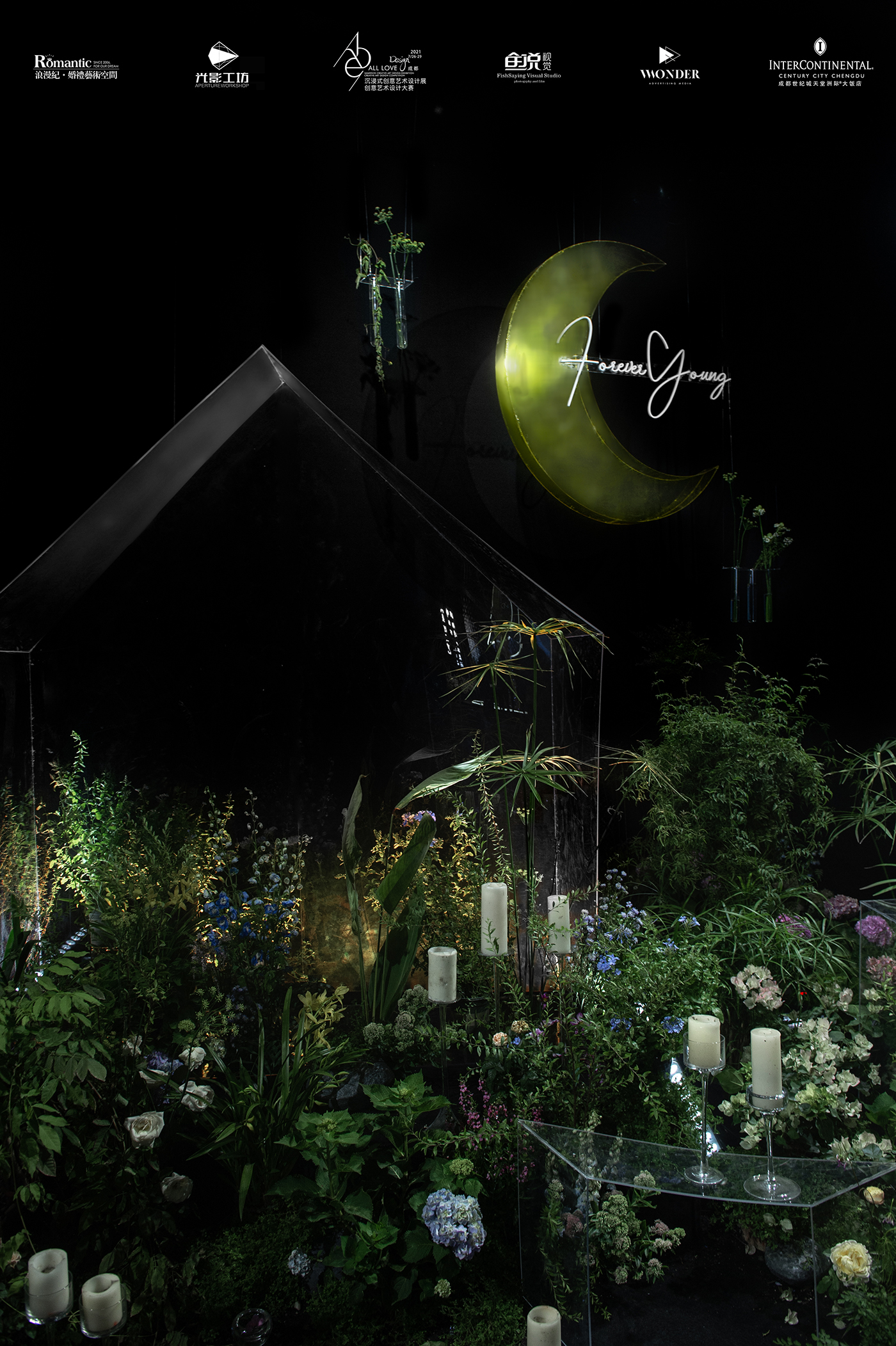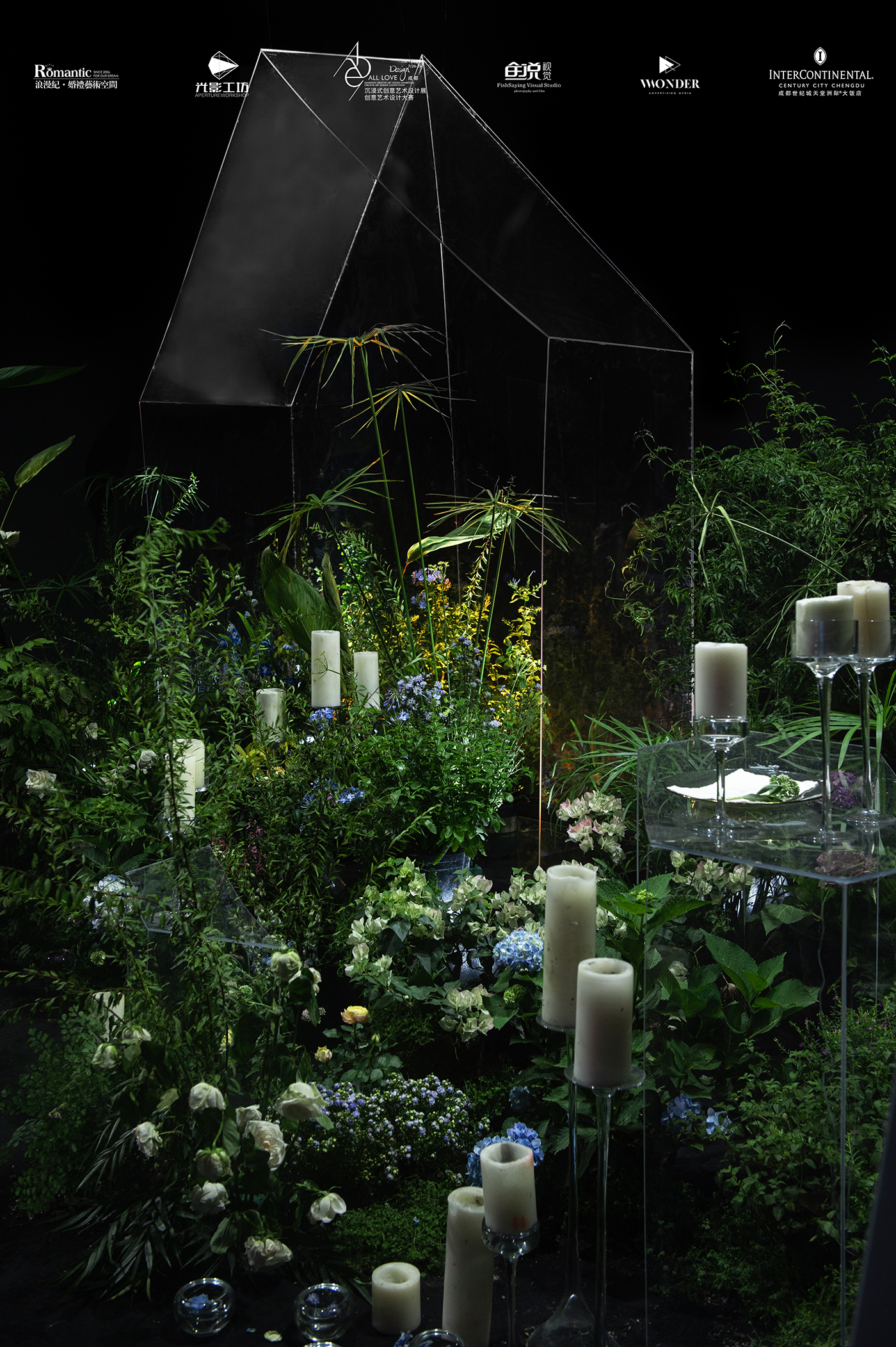 浪漫纪·婚礼艺术空间的创意艺术设计展,摒弃了设计过程中复杂的表现手法和新颖的材质,选取日常生活中常见的绿植、花艺,