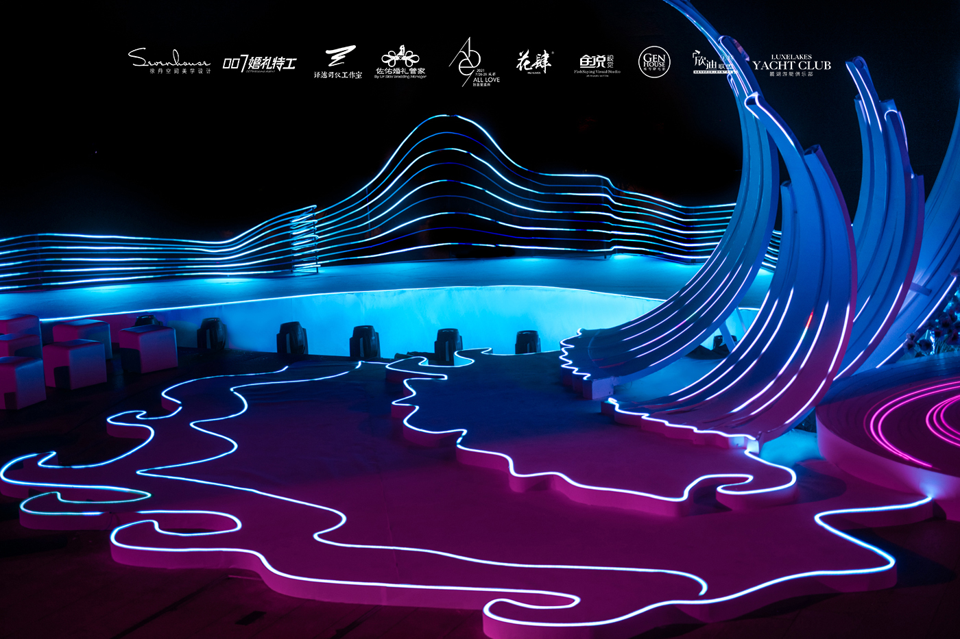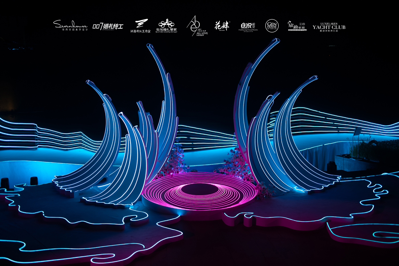 此次宴会设计发布位于成都麓湖生态城-麓湖艺展中心码头。