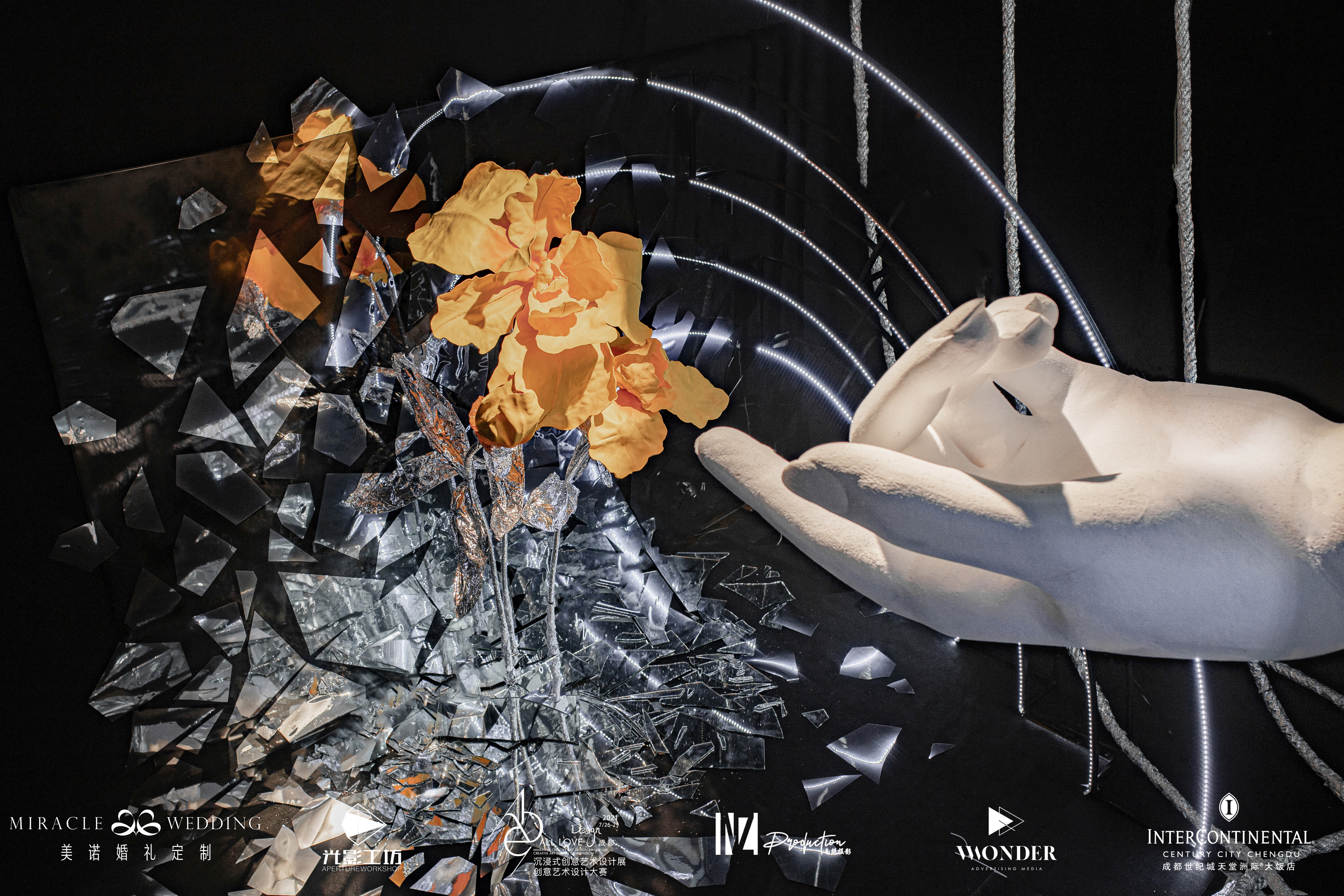 厦门美诺婚礼定制选用人身上最能传达信息的部位——手部,来呈现【致吾爱】的画面,以手势传达信息。