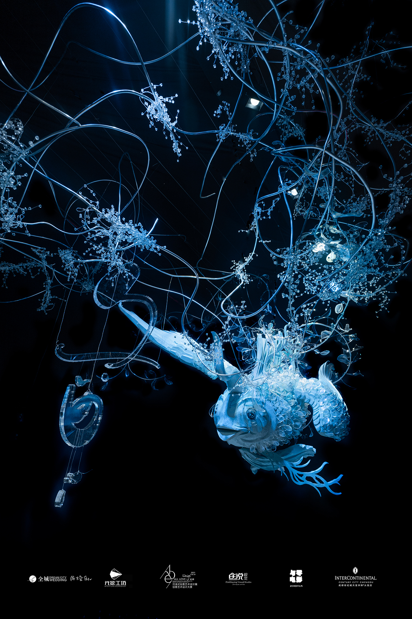 在设计的表达上,陈大杂通过虚实结合的手法来表达呈现大海和鱼的关系,通过真实的鱼和虚幻的线条来进行呈现。