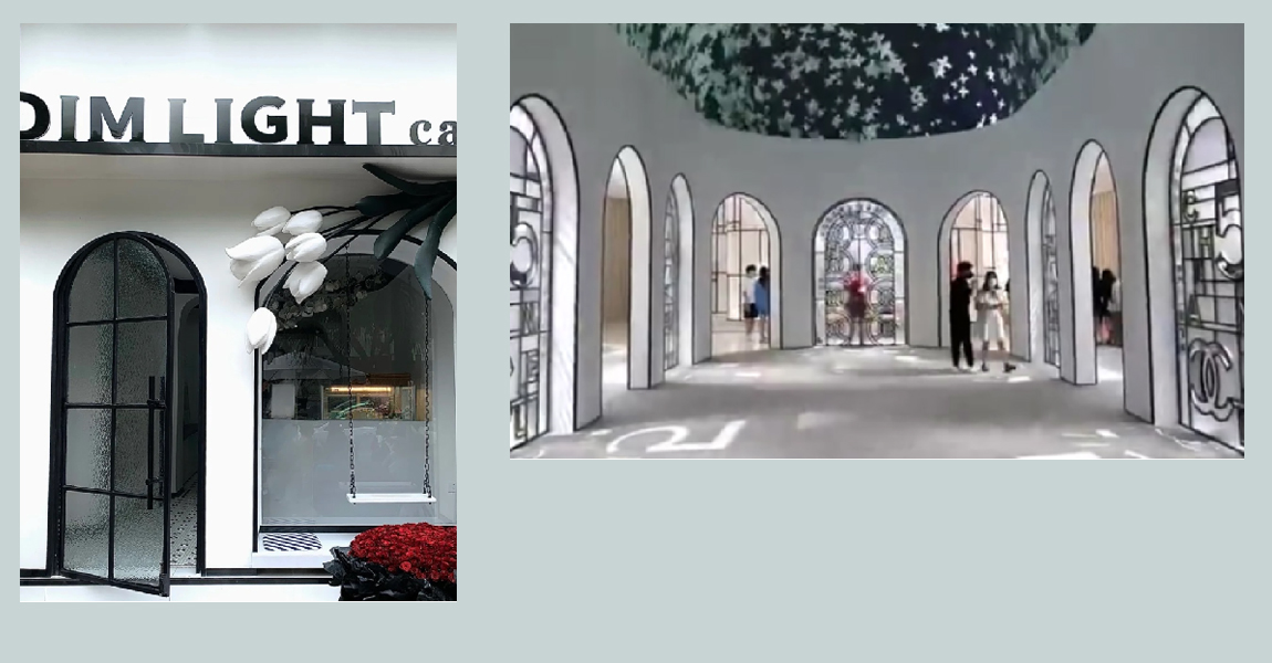 结合香奈儿前卫的街头橱窗设计,宴会厅顶部“灯罩”体现法式优雅独特的造型。