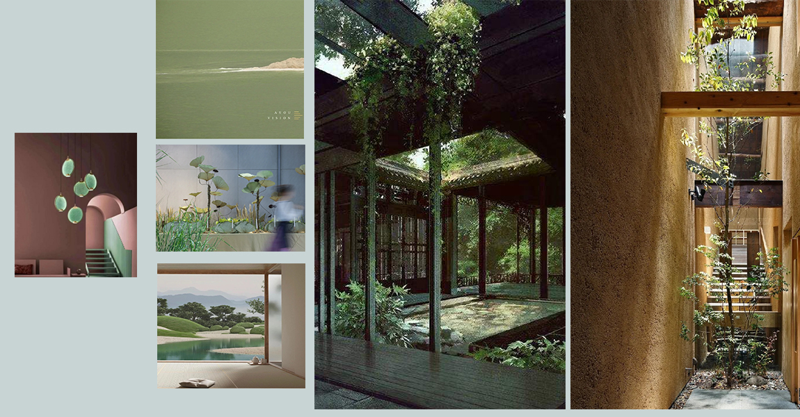“看尽繁华都市之靡靡,今赏山水青竹之芬芳”,竹林从天井处向上生长,茂密且热烈。