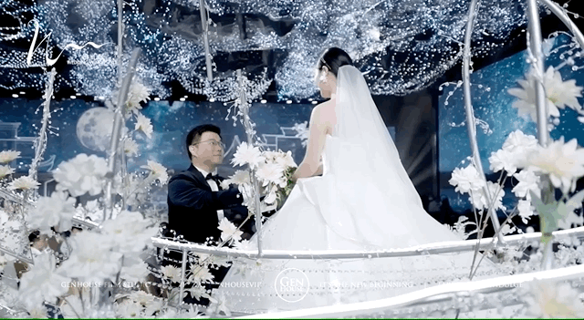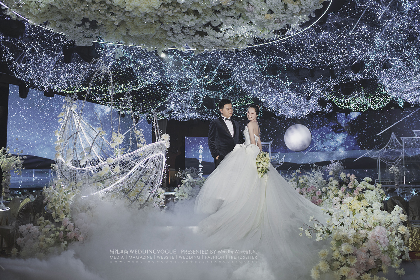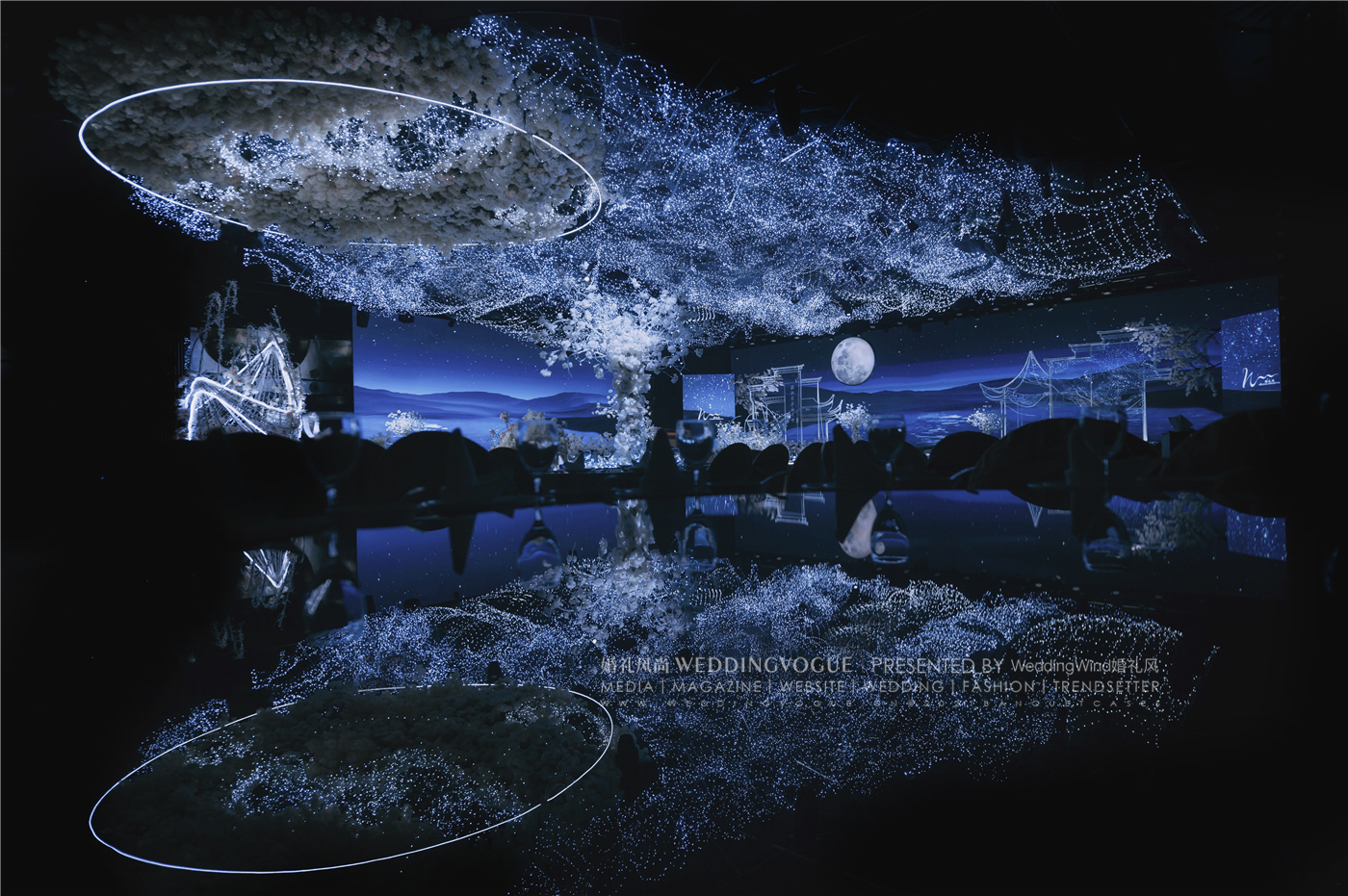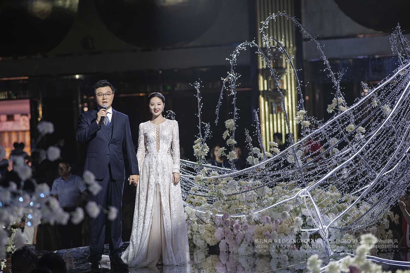 在设计上打破常规、打破束缚,在流程执行上影像、声效和光电的无缝衔接与配合,WeddingWind婚礼风最终得以造就这场可以进行场景切换的音画「诗」幕剧沉浸式婚礼,将完美的场景和沉浸式体验带给了新人与宾客,让人们对家乡的情怀和对婚姻的祝福在诗意浪漫的氛围里一次次盛放,永远流传。