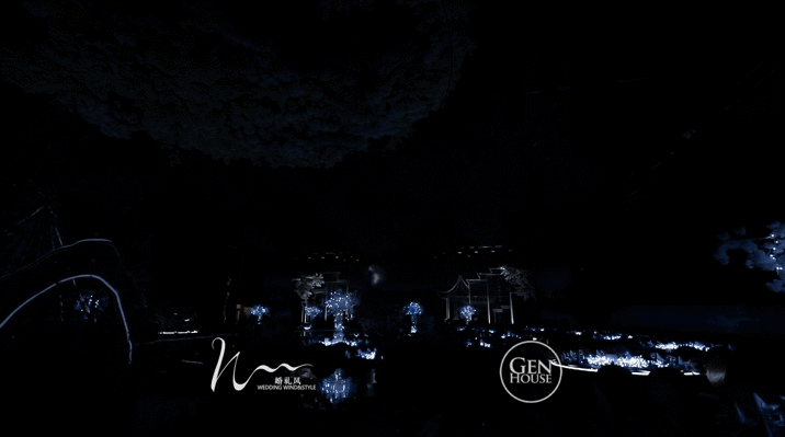 在绞尽脑汁地构思、不舍昼夜地筹备之后,这场兼顾新人需求和特别流程创意的、具有东方意境的西式音画『诗』幕剧270°沉浸式婚礼终于得以问世。