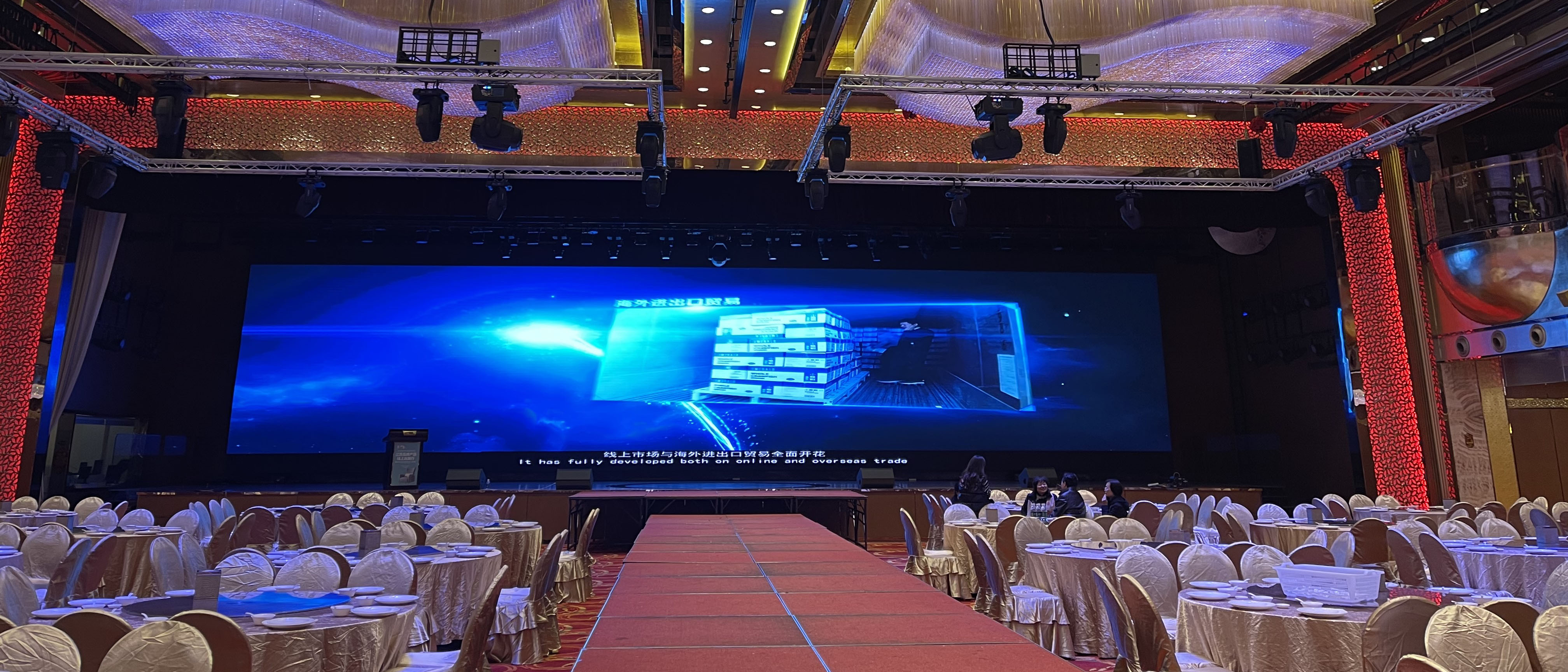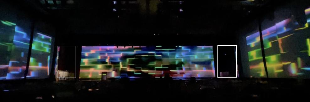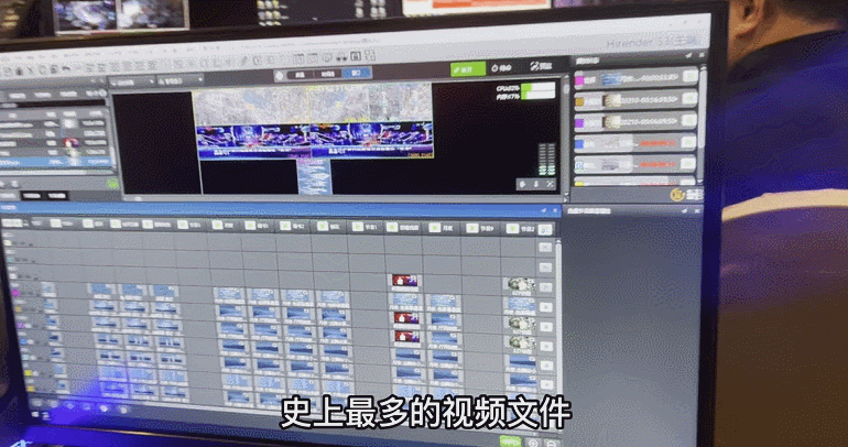 现场有8块不同区域、不同功能的多媒体屏幕:主屏幕、两侧立式分屏、升降舞台地屏、升降舞台侧屏、两侧超宽幅侧屏、通道异形地屏。
