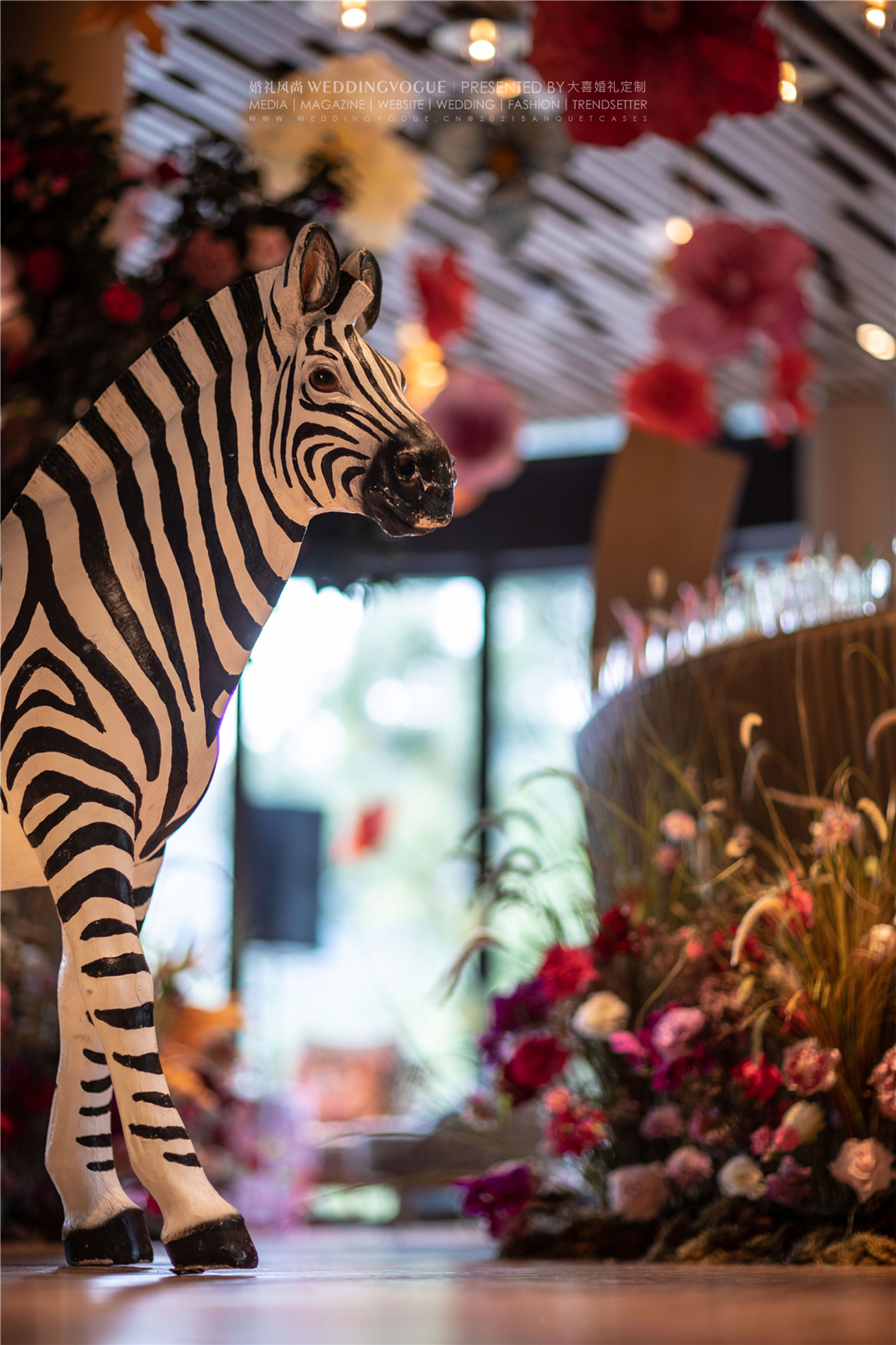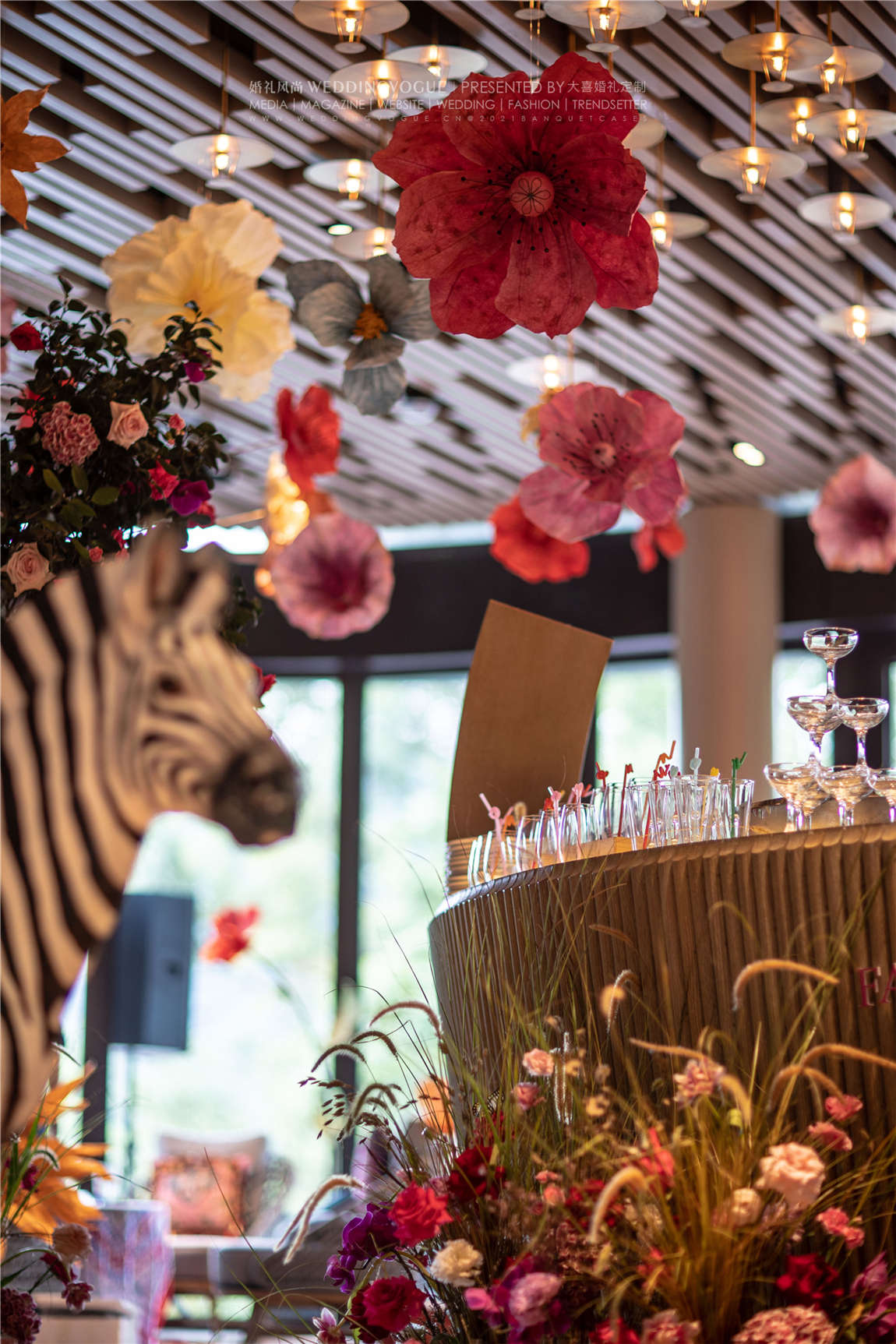 室内部分的设计,大喜婚礼定制沿用的同样的风格,并增加动物元素,加强空间中的艺术性与趣味感。