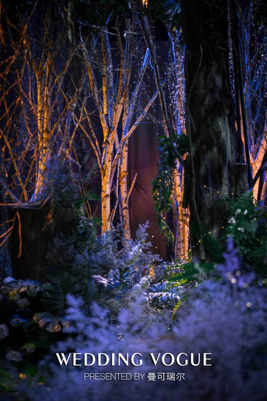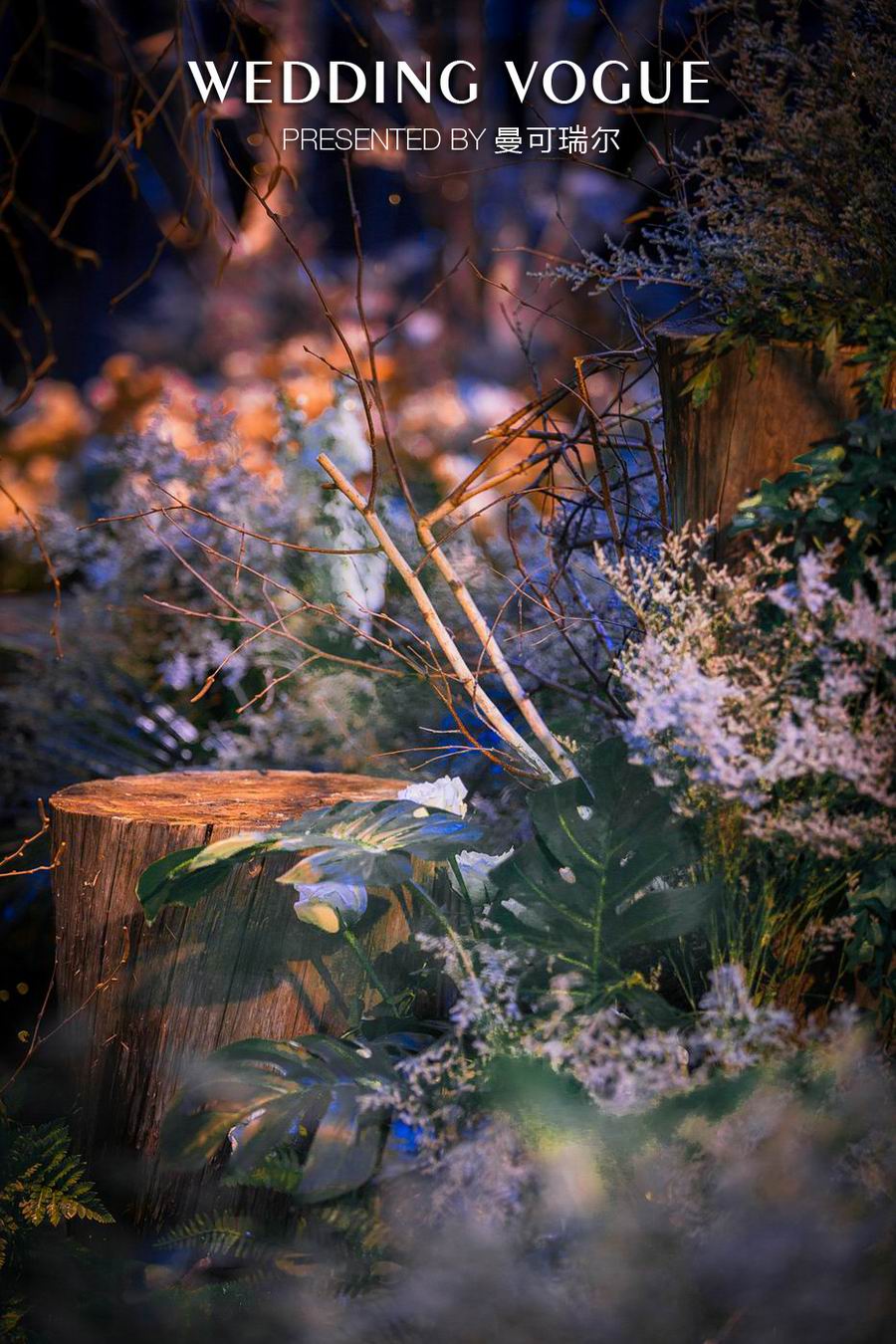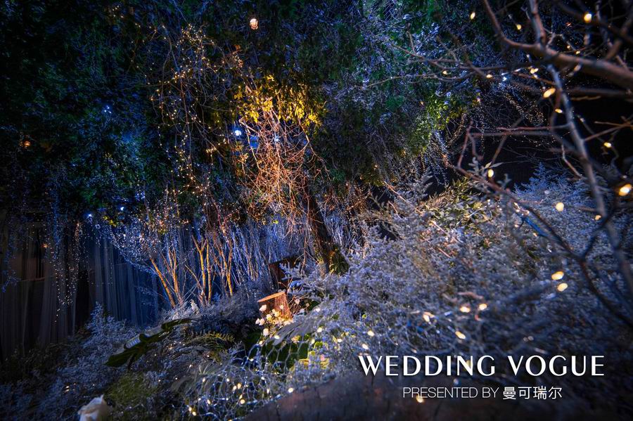 场景布置上曼可瑞尔坚持打造一贯自然灵动的森林意境,这也是曼可瑞尔一直所倡导的环保婚礼理念。