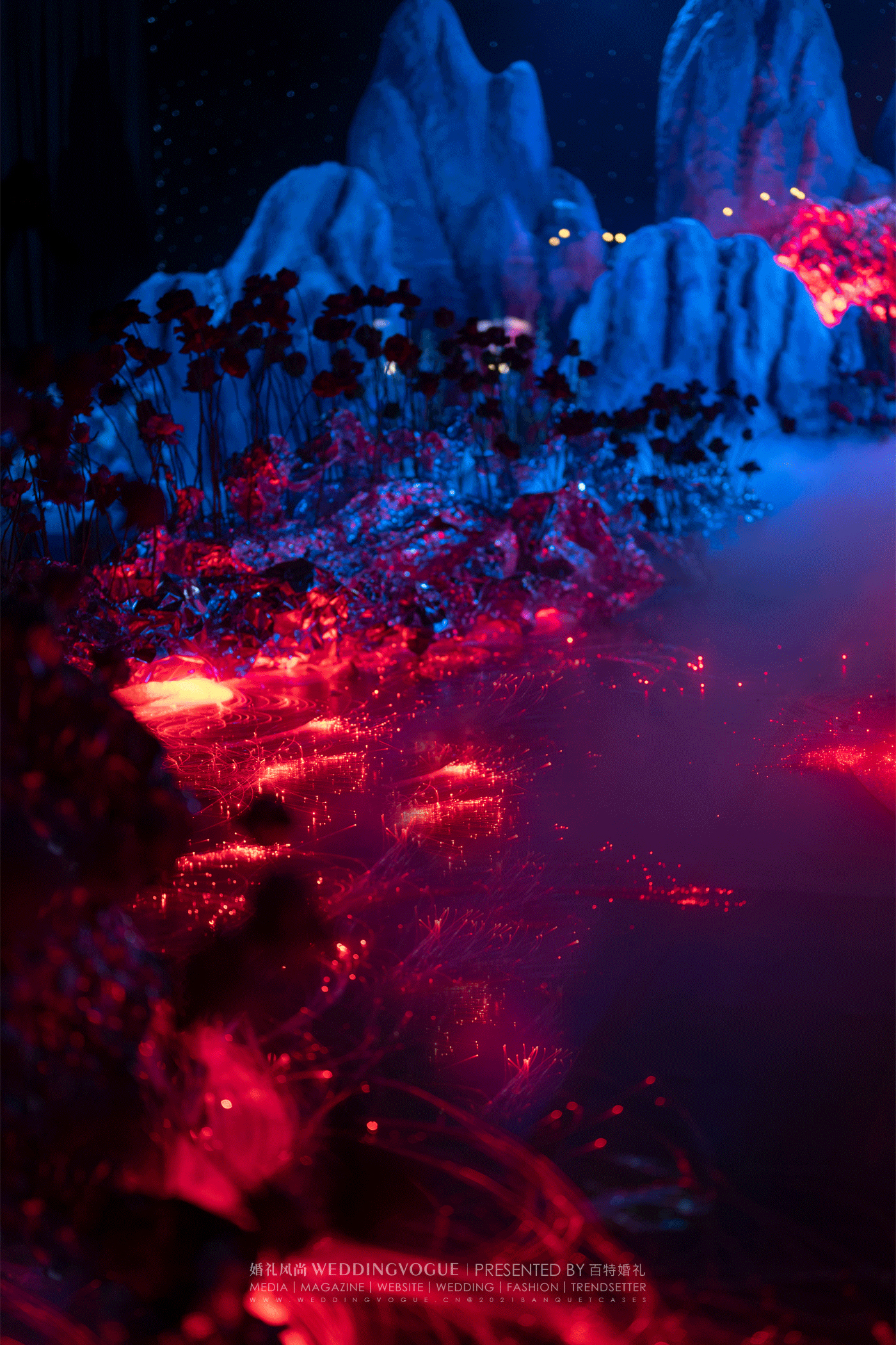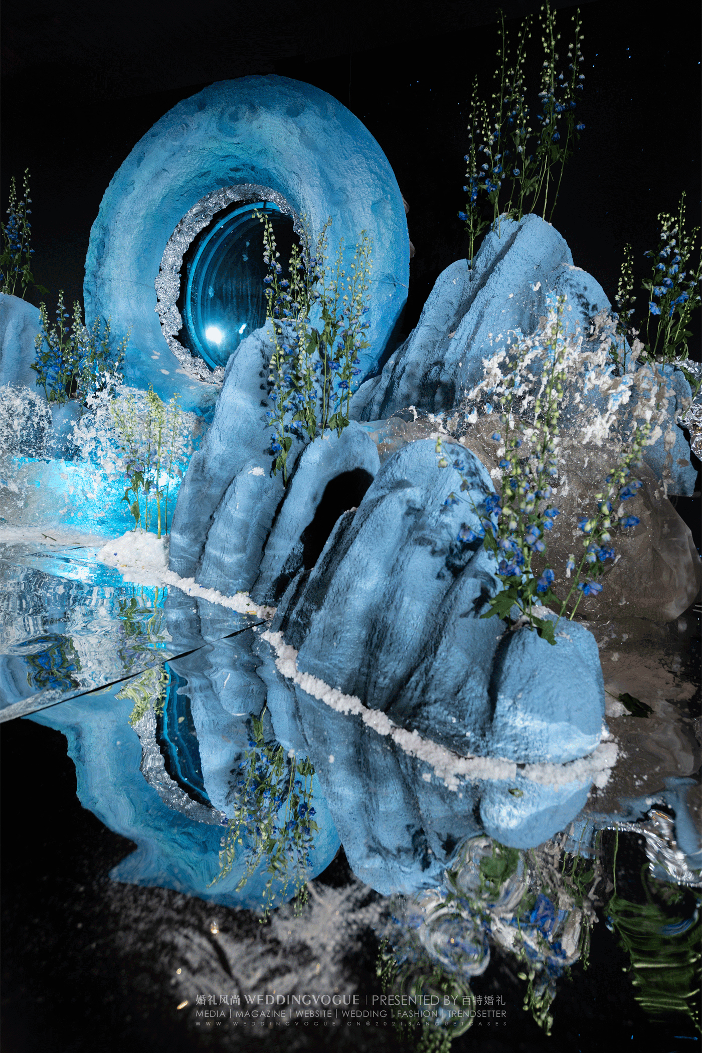 俯瞰冰川裂缝,折射出一道道炽热的光
