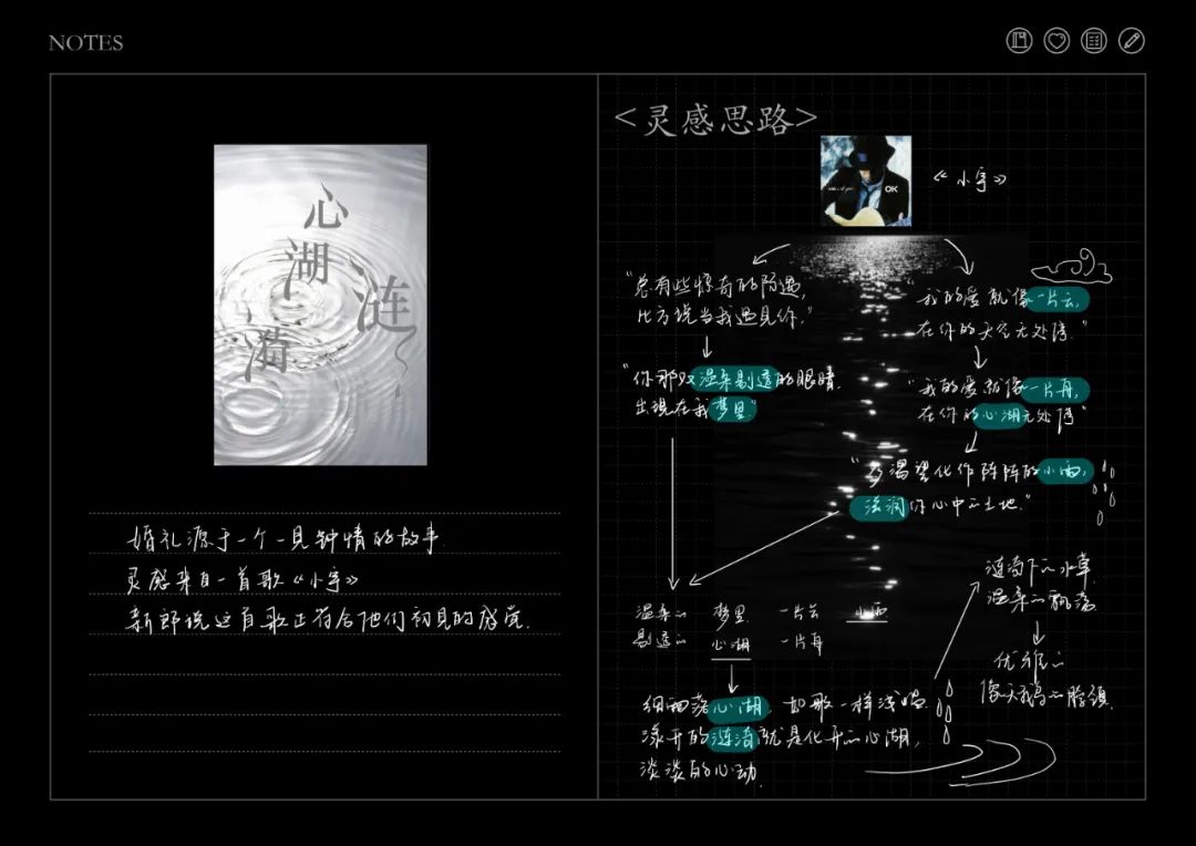 把MV里镜面拼凑的心结合歌词里出现的小雨、心湖