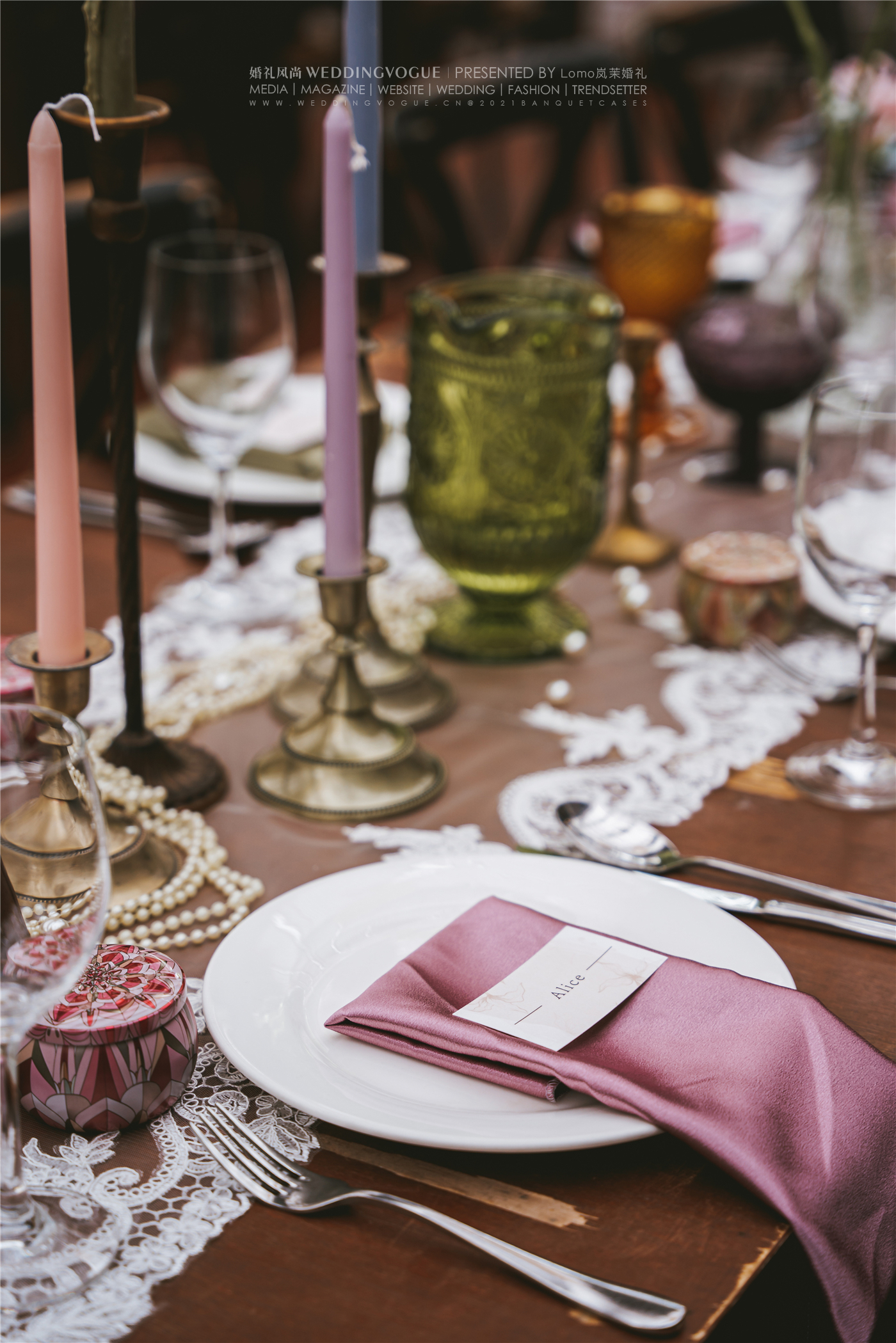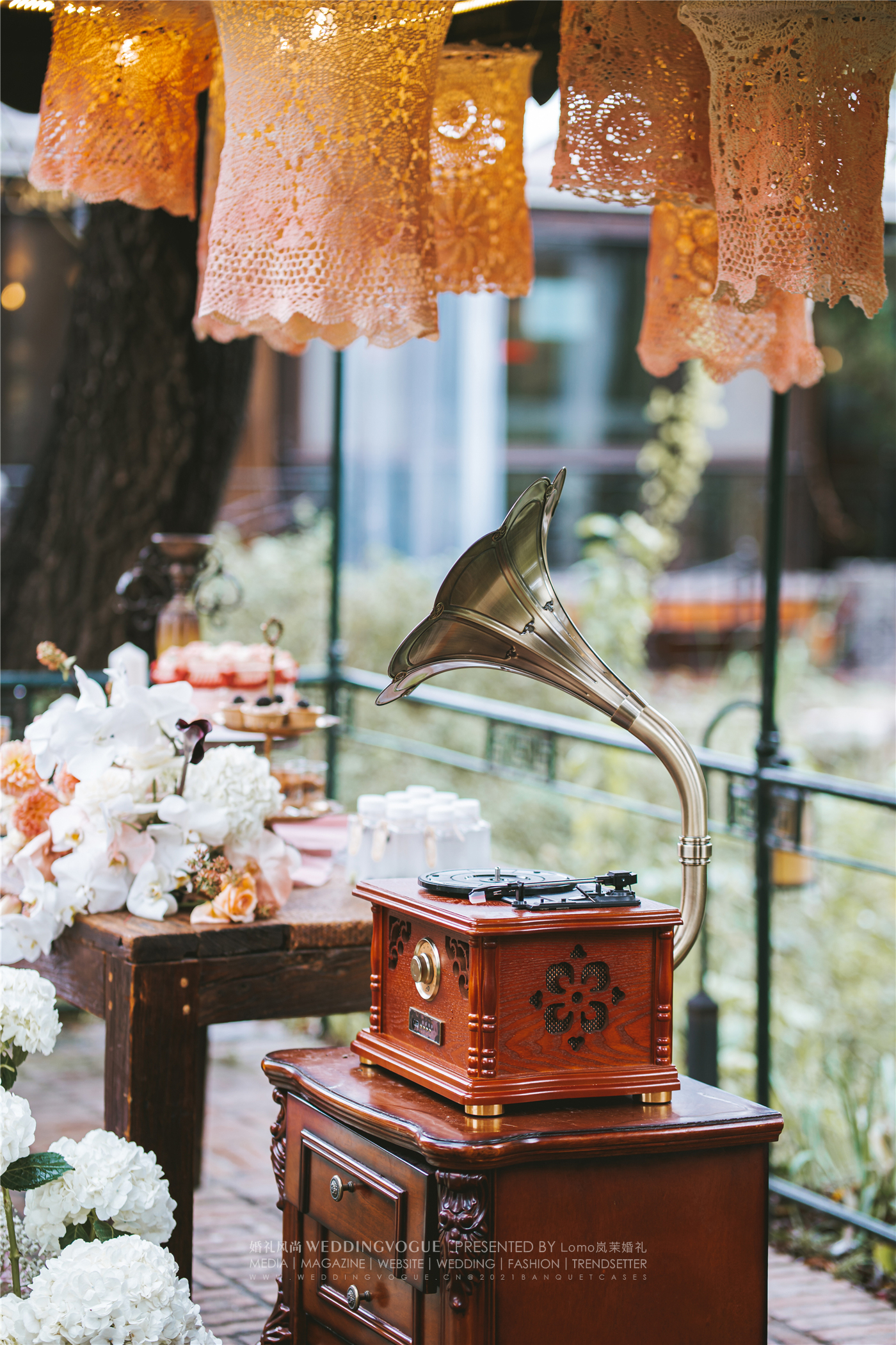 古铜色的烛台、复古梳妆台、老式留声机......这些小细节的加入让现场更加丰满。