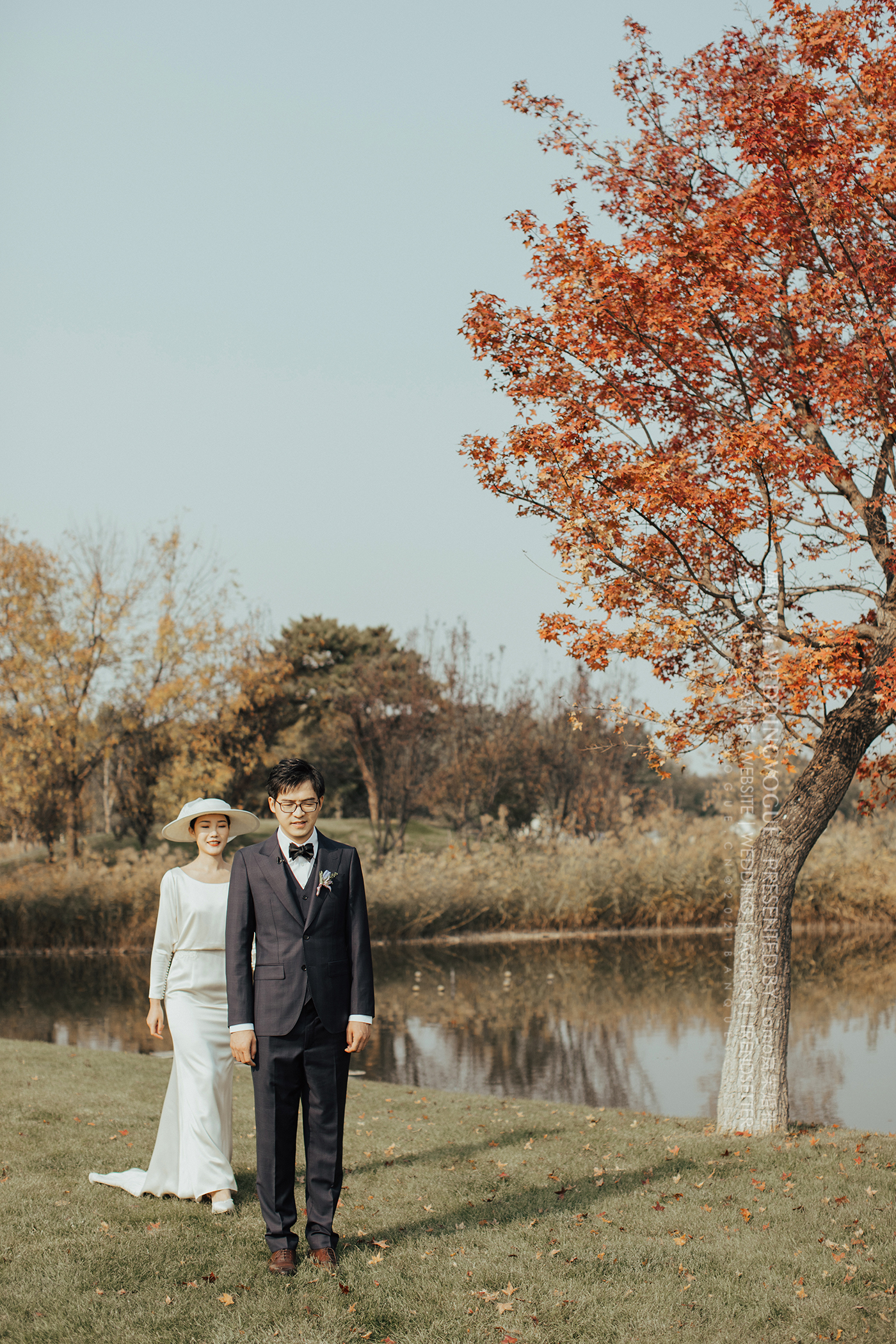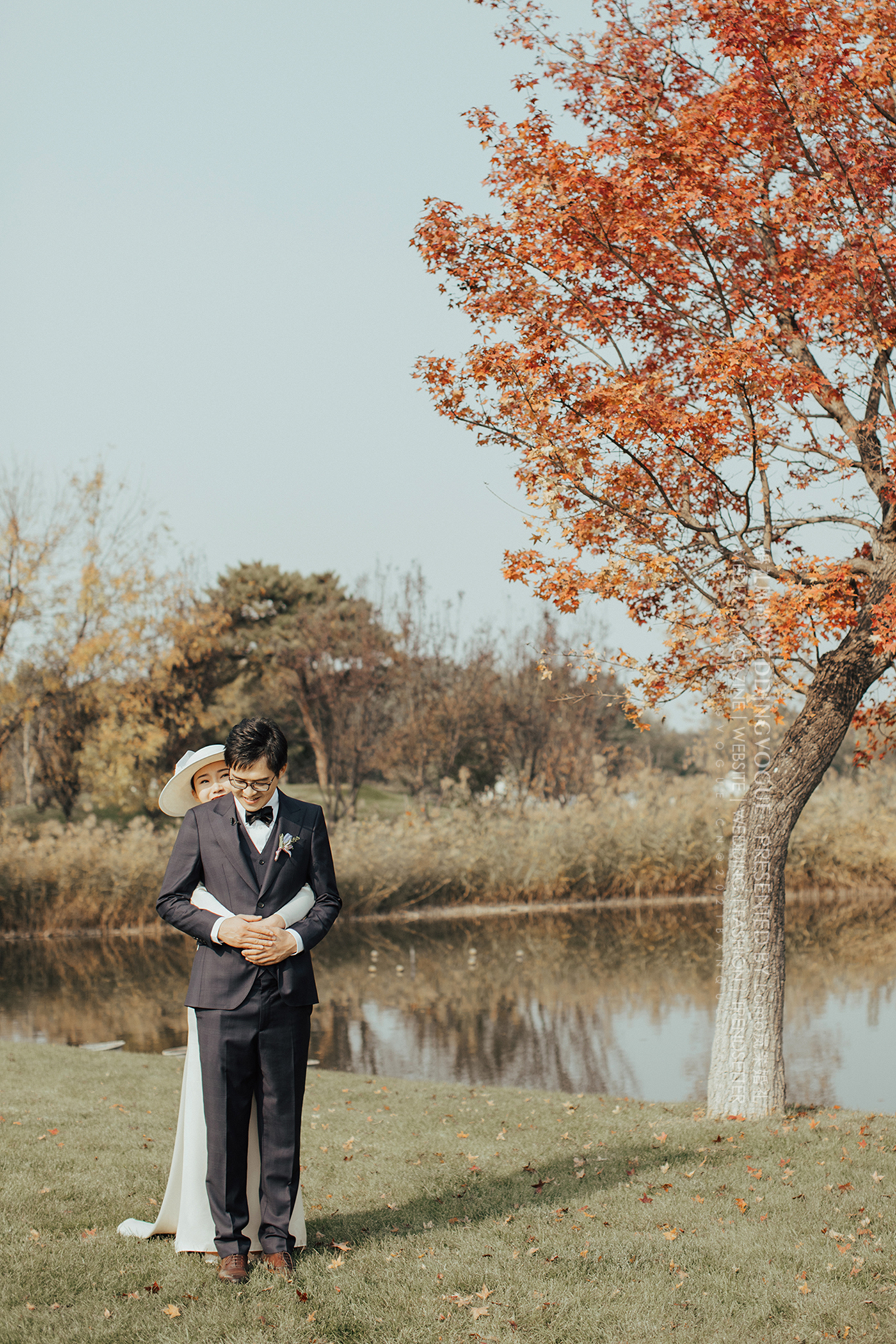 在First look之后,他们静静地站在湖边,享受着这特别的日子与片刻恬适。这一刻,美好且值得铭记。